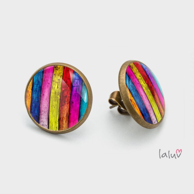 Ręcznie robione kolczyki z wysokiej jakości grafiką zamkniętą pod wypukłym szkiełkiem i oprawioną w antyalergiczną bazę w kolorze antycznego złota. Każda para zaopatrzona jest w zatyczki w kolorze bazy zapobiegające wypadaniu kolczyków z uszu. ;)