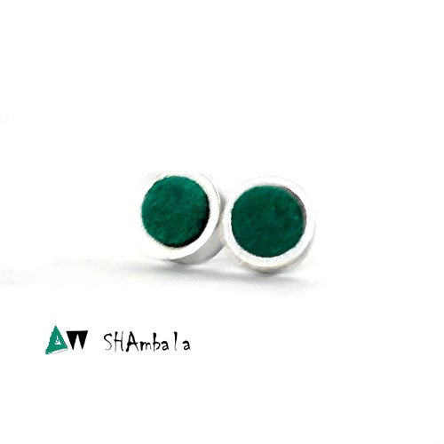 Urocze, drobne kolczyki na sztyft. Wewnątrz srebrnego walca osadzone jest tworzywo akrylowe w kolorze butelkowej zieleni. Walec wykonany został z oksydowanego srebra. Jego średnica wynosi 7 mm. Gorąco polecam:)