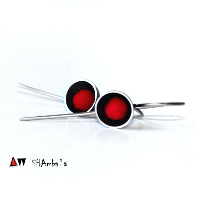 Awangardowe, delikatne, nowoczesne kolczyki. Wykonane zostały ze srebra i tworzywa akrylowego. Akryl barwiony jest w mojej pracowni. Staram się uzyskiwać niepowtarzalne, soczyste kolory. Powstaje nowa, unikatową kolekcja. Kolczyki są niezwykle pomysłowe, jednocześnie uniwersalne i lekkie. Całość została zaimpregnowana.