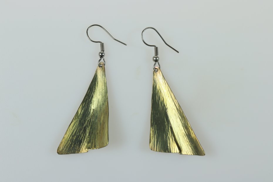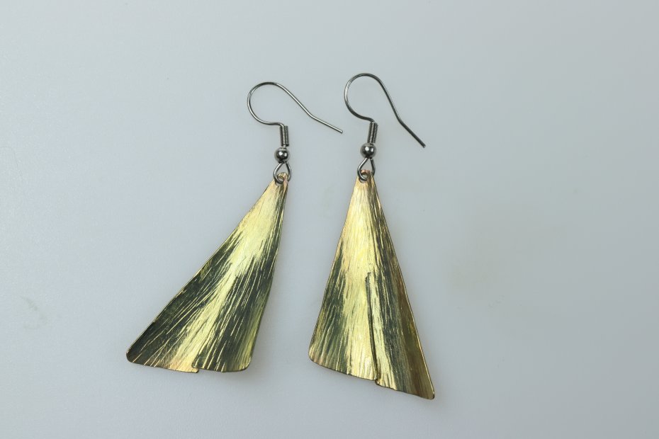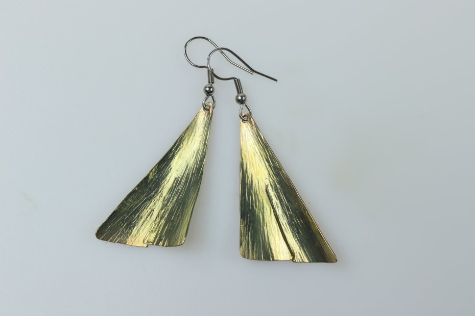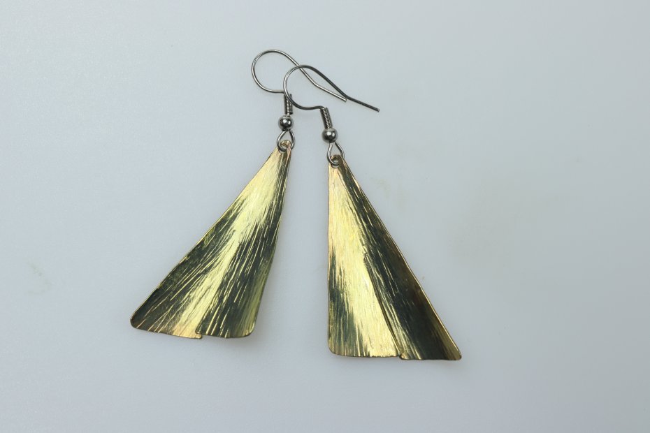 Kolczyki ręcznie wykonane z tytanu Grade I i stali chirurgicznej. Tytan szczotkowany. Długość z biglem 5.5 cm. Sama zawieszka 3.8 cm x 2 cm. Kolczyki są bardzo lekkie (waga pary 4 g) i nie uczulają.