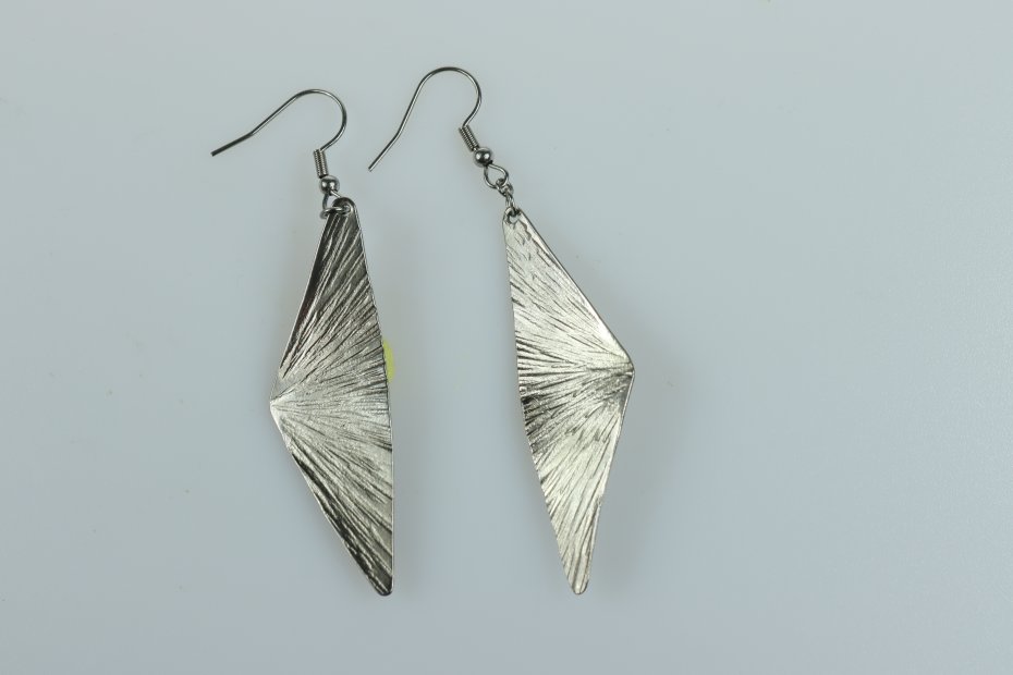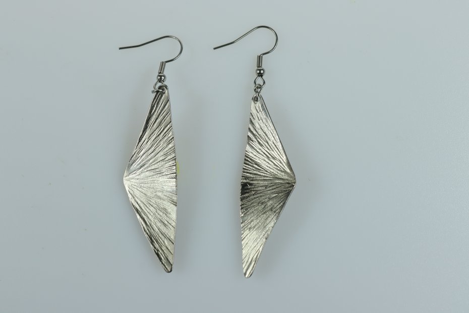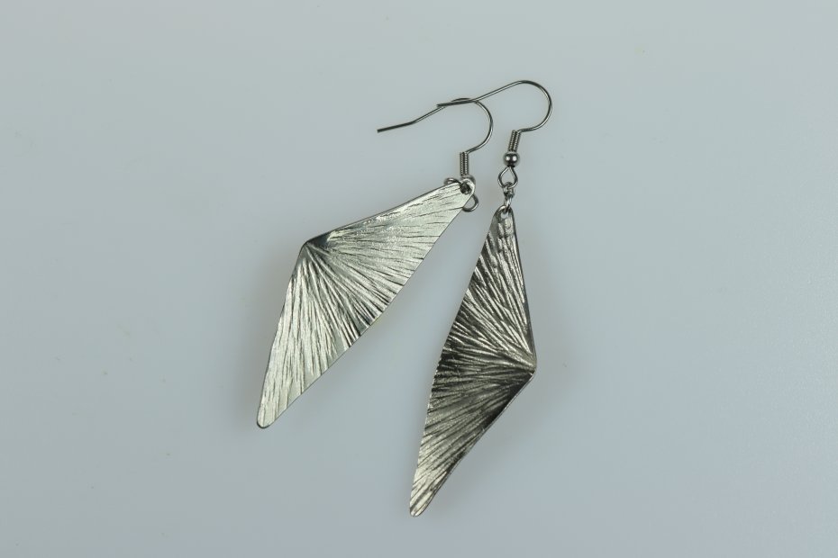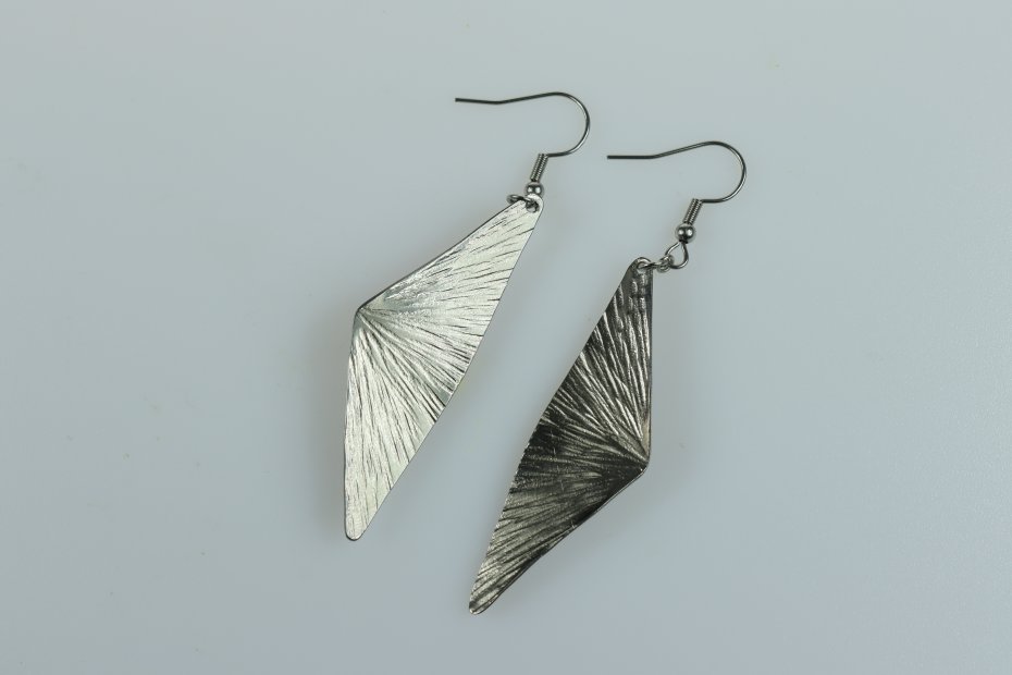 Kolczyki ręcznie wykonane z tytanu Grade I i stali chirurgicznej. Tytan szczotkowany. Długość z biglem 6.5 cm. Góra Fuji 4.5 cm x 1.5 cm. Kolczyki nie uczulają i są bardzo lekkie (waga pary 4 g).