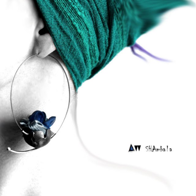 nietypowa forma zestawiona jest z tkaniną w kolorze granatu i metalicznego srebra. Kolczyki wykonane są z oksydowanego srebra. Obręcz zamyka się w wymiarach 7 na 8 cm. Średnica srebrnego pączka to 2,2 cm. Gorąco polecam:)