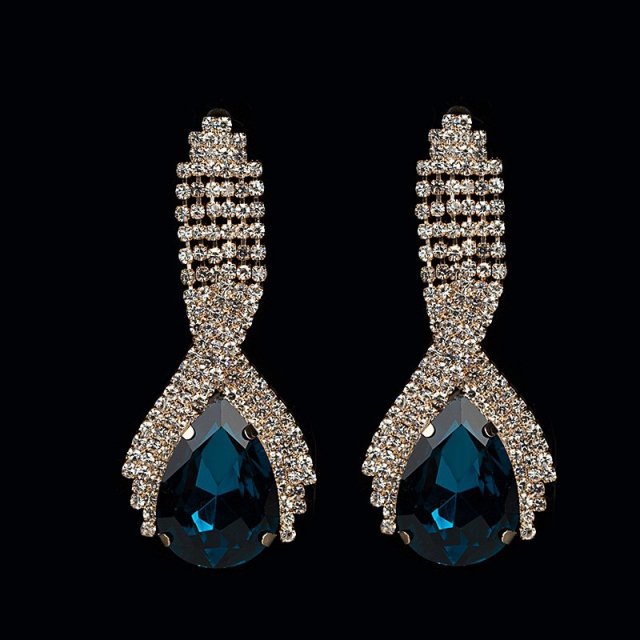 Piękne kolczyki w całości wysadzane cyrkoniami, z dużym szafirowym kamieniem.