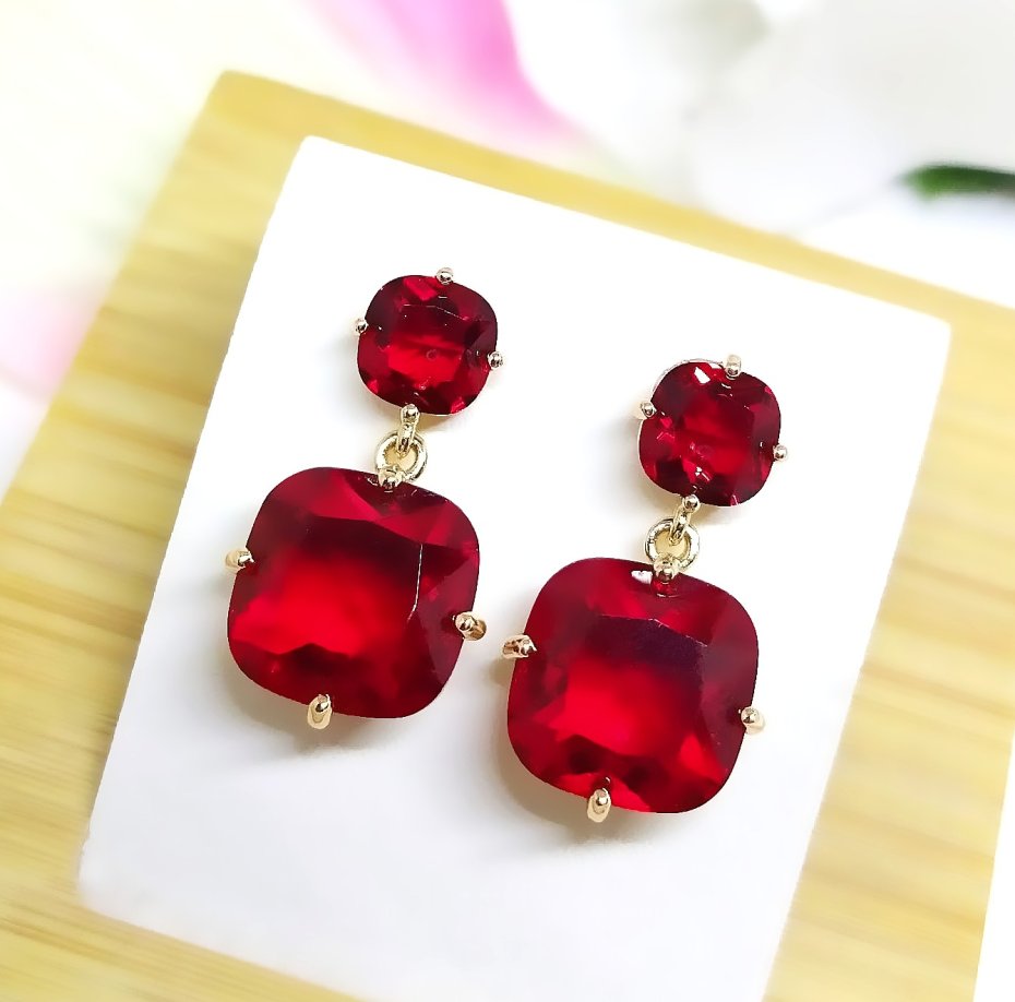 K5031 Proste eleganckie kolczyki na sztyftach z kryształkami w pięknej czerwieni.