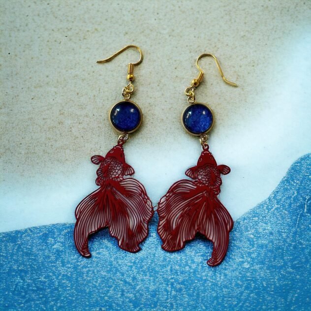 Czerwona zawieszka w kształcie karpia Koi symbolizuje odwagę, pasję i wewnętrzną siłę, a oczko w kolorze głębokiego błękitu (10 mm) wprowadza równowagę, spokój i harmonię – razem tworzą energetyczny, a jednocześnie elegancki duet.
