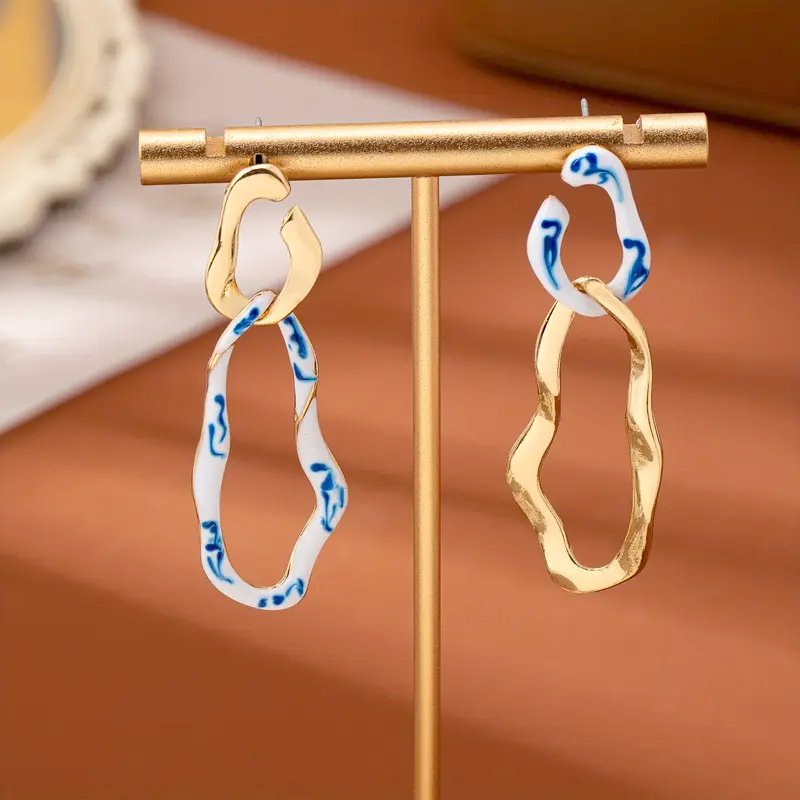 Piękne, pocieszne i urocze kolczyki w klimacie portugalskich kafelek Azulejo, przypominają malowaną ceramikę