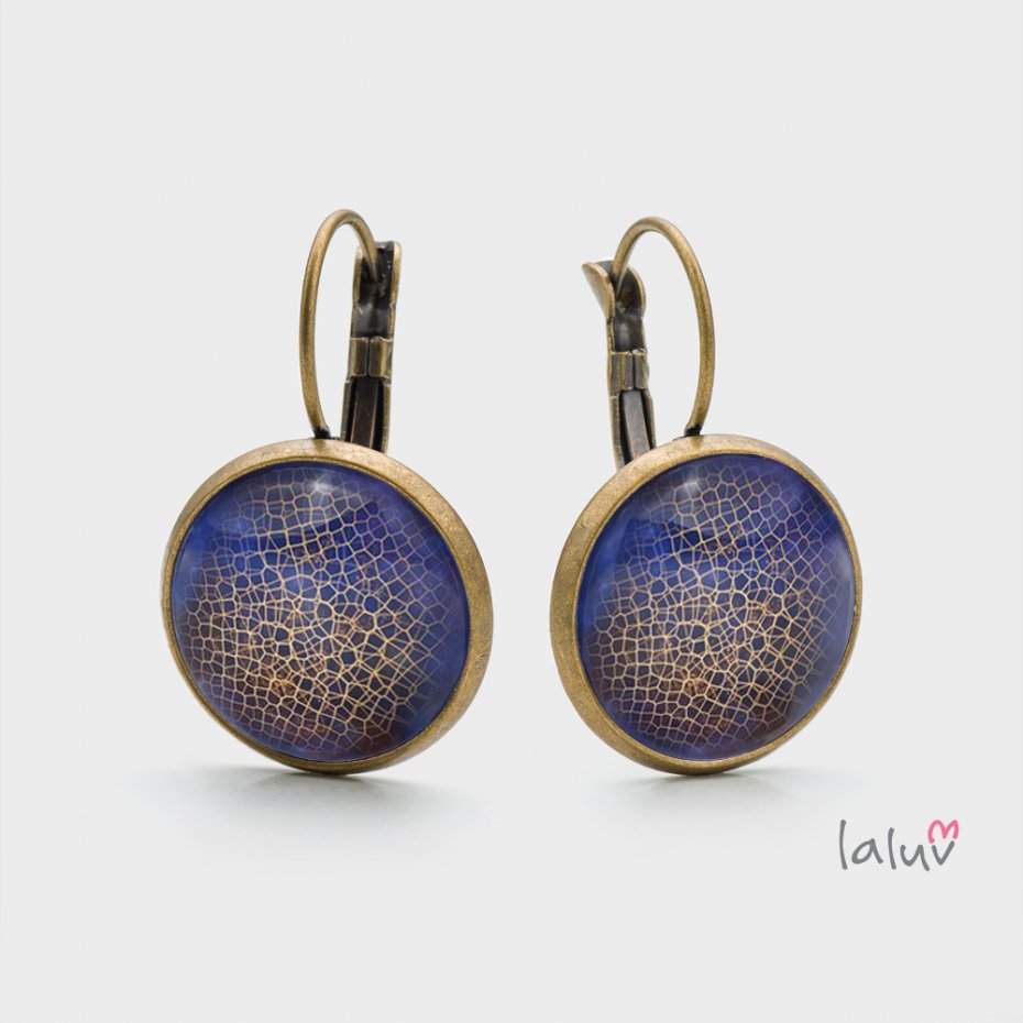 Ręcznie robione kolczyki z wysokiej jakości grafiką zamkniętą pod wypukłym szkiełkiem i oprawioną w antyalergiczną bazę w kolorze starego złota.