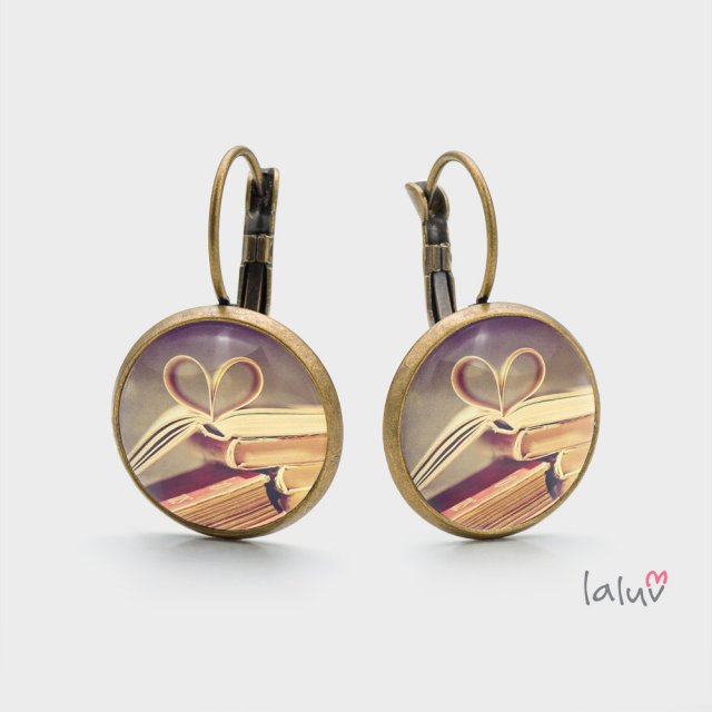 Ręcznie robione kolczyki z wysokiej jakości grafiką zamkniętą pod wypukłym szkiełkiem i oprawioną w antyalergiczną bazę w kolorze starego złota.