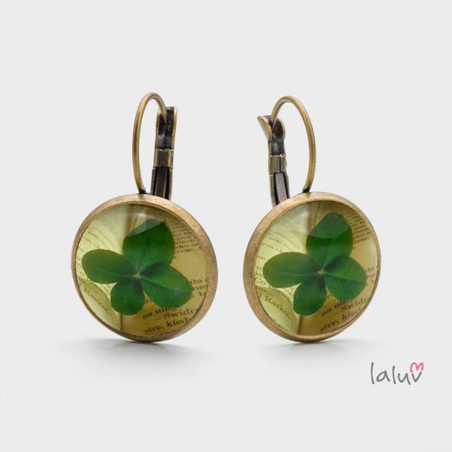 Ręcznie robione kolczyki z wysokiej jakości grafiką zamkniętą pod wypukłym szkiełkiem i oprawioną w antyalergiczną bazę w kolorze starego złota.