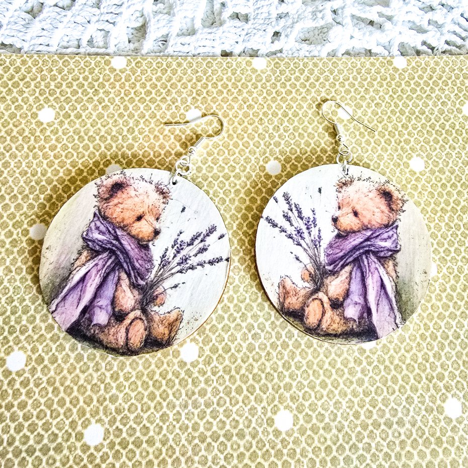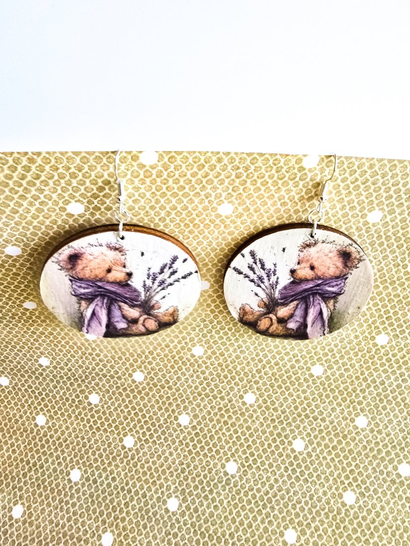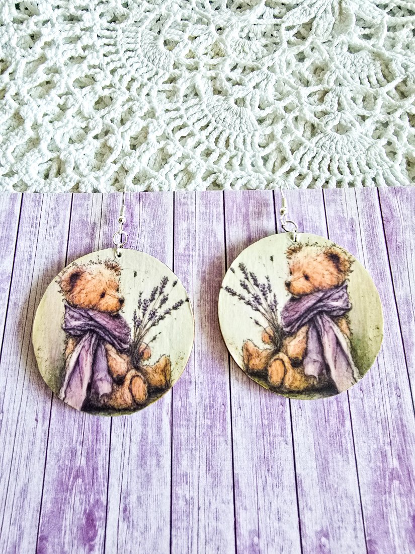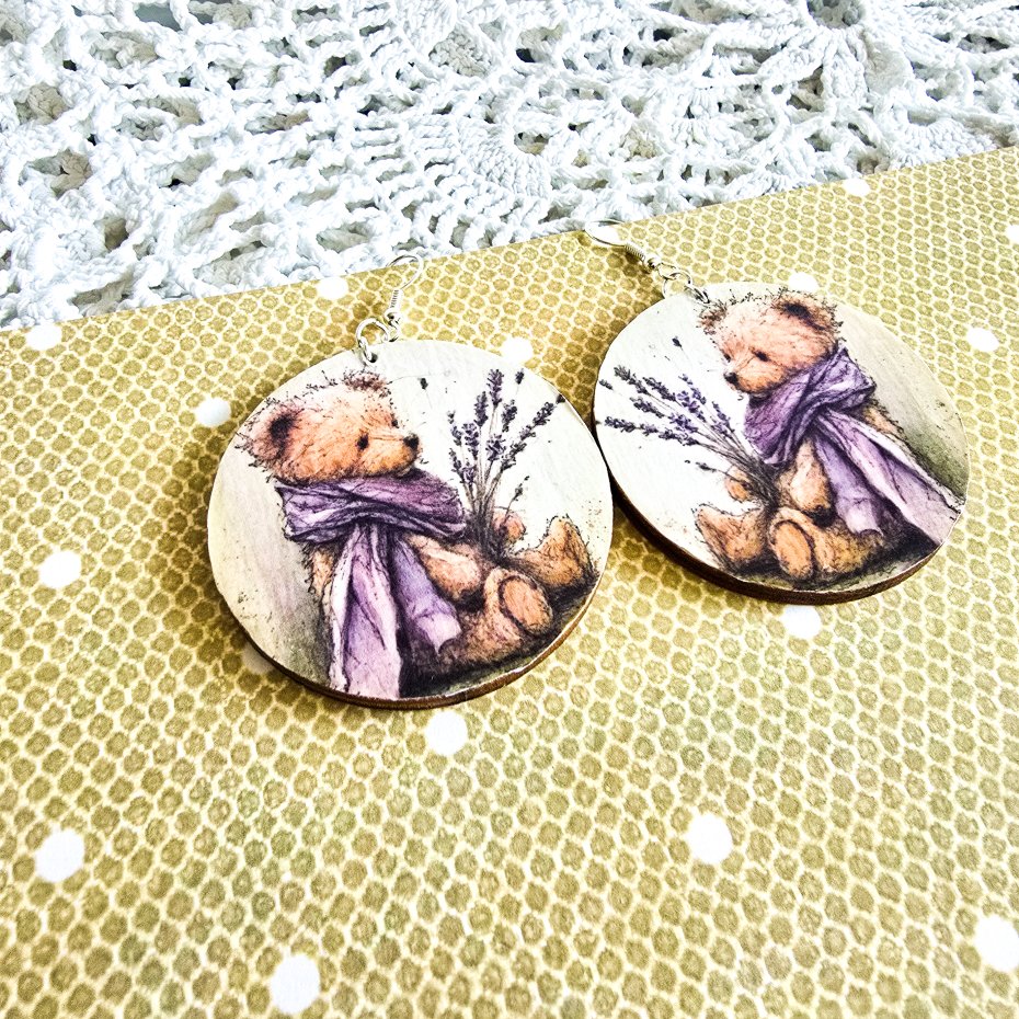 Tagi: #kolczyki na prezent, #kolczyki wiszące, #lawenda, #misiu