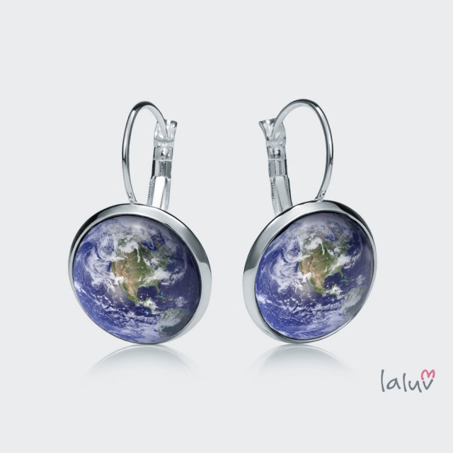 Ręcznie robione kolczyki z wysokiej jakości grafiką zamkniętą pod wypukłym szkiełkiem i oprawioną w antyalergiczną bazę w kolorze srebrnym.