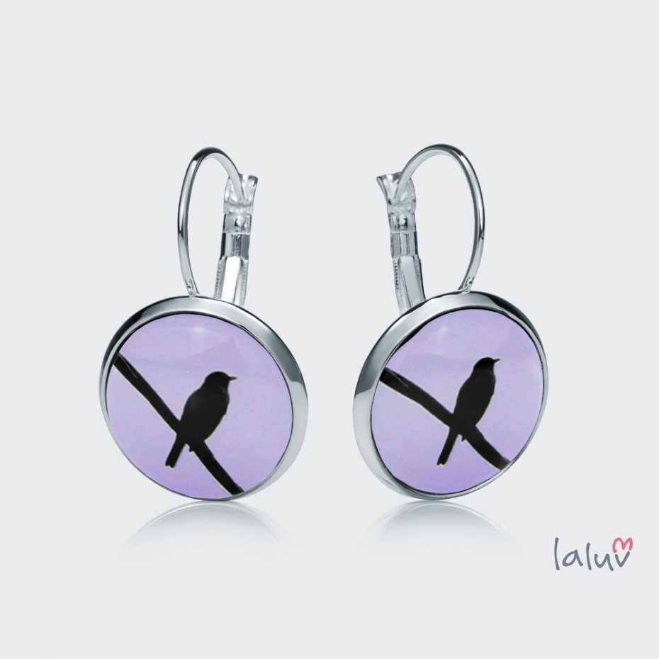 Ręcznie robione kolczyki z wysokiej jakości grafiką zamkniętą pod wypukłym szkiełkiem i oprawioną w antyalergiczną bazę w kolorze srebrnym.