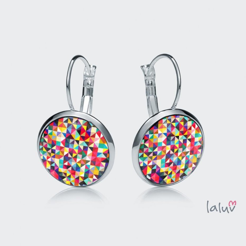 Ręcznie robione kolczyki z wysokiej jakości grafiką zamkniętą pod wypukłym szkiełkiem i oprawioną w antyalergiczną bazę w kolorze srebrnym.