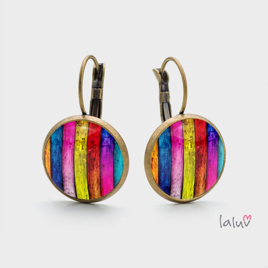 Ręcznie robione kolczyki z wysokiej jakości grafiką zamkniętą pod wypukłym szkiełkiem i oprawioną w antyalergiczną bazę w kolorze starego złota.