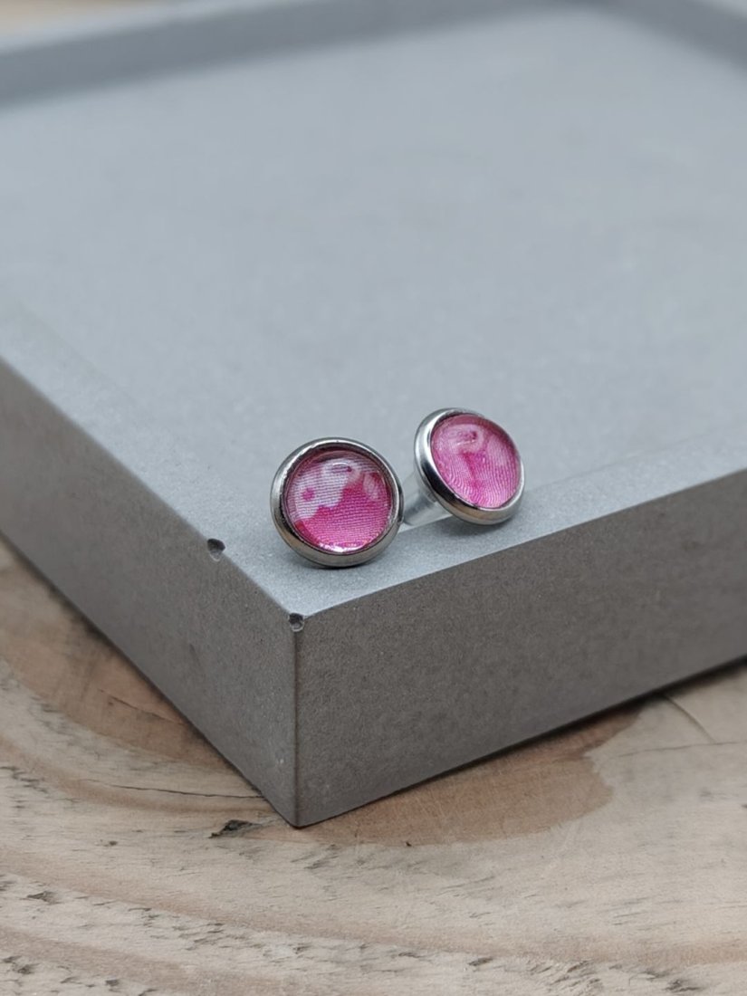 Delikatne kolczyki wkrętki z okrągłym oczkiem w odcieniach różu, inspirowane subtelnym, artystycznym wzorem przypominającym akwarelę. Ich lekka forma i pastelowa kolorystyka sprawiają, że są idealnym dodatkiem do codziennych stylizacji, ale równie dobrze sprawdzą się jako kobiecy akcent do bardziej eleganckiego stroju. To propozycja dla osób, które lubią biżuterię prostą, a jednocześnie niebanalną.