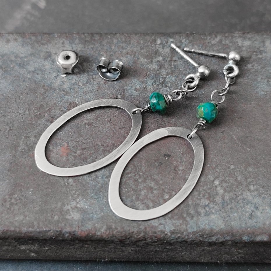 Kolczyki zostały wykonane ze srebra oraz oponek naturalnej chryzokoli.