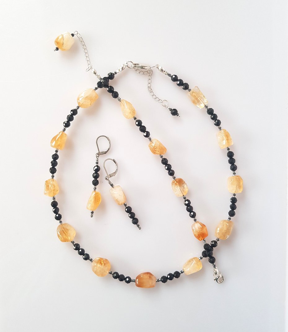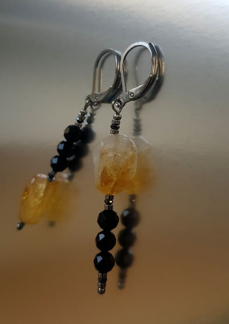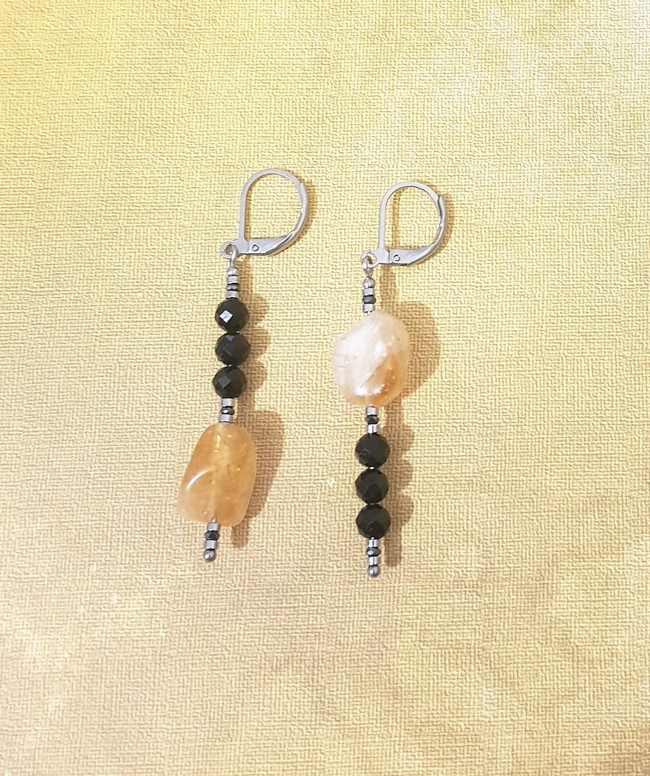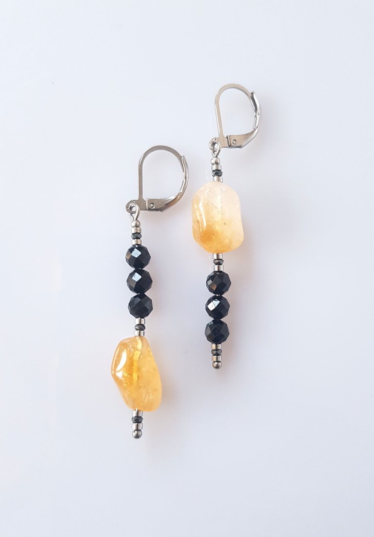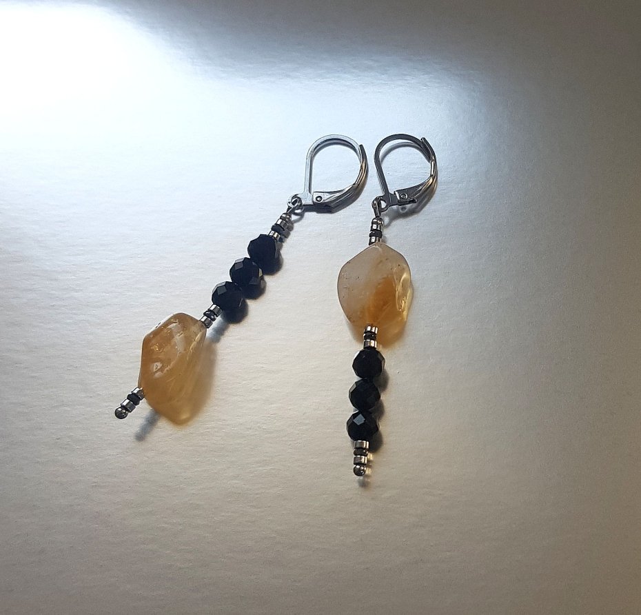Wykonane z niezwykłych bryłek cytrynu i fasetowanych kulek czarnego turmalinu.