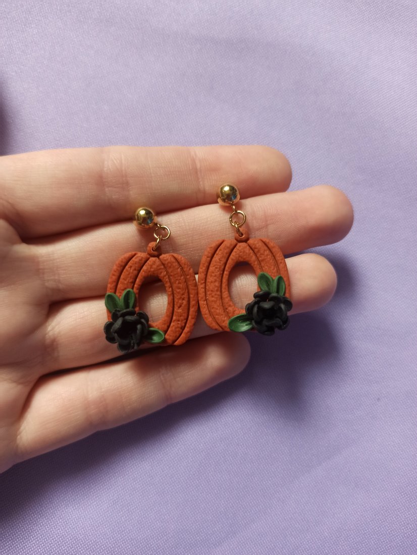 Kolczyki wiszące sztyfty kulki w kształcie dyni z dziurką w środku.