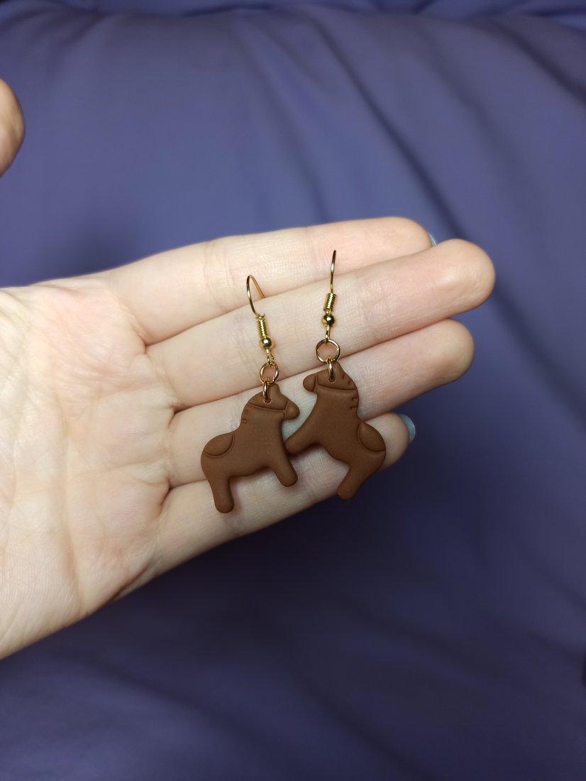 Kolczyki wykonane z gliny polimerowej, lekkie i wytrzymałe. Sztyfty ze stali chirurgicznej. W zestawie silikonowe zatyczki.