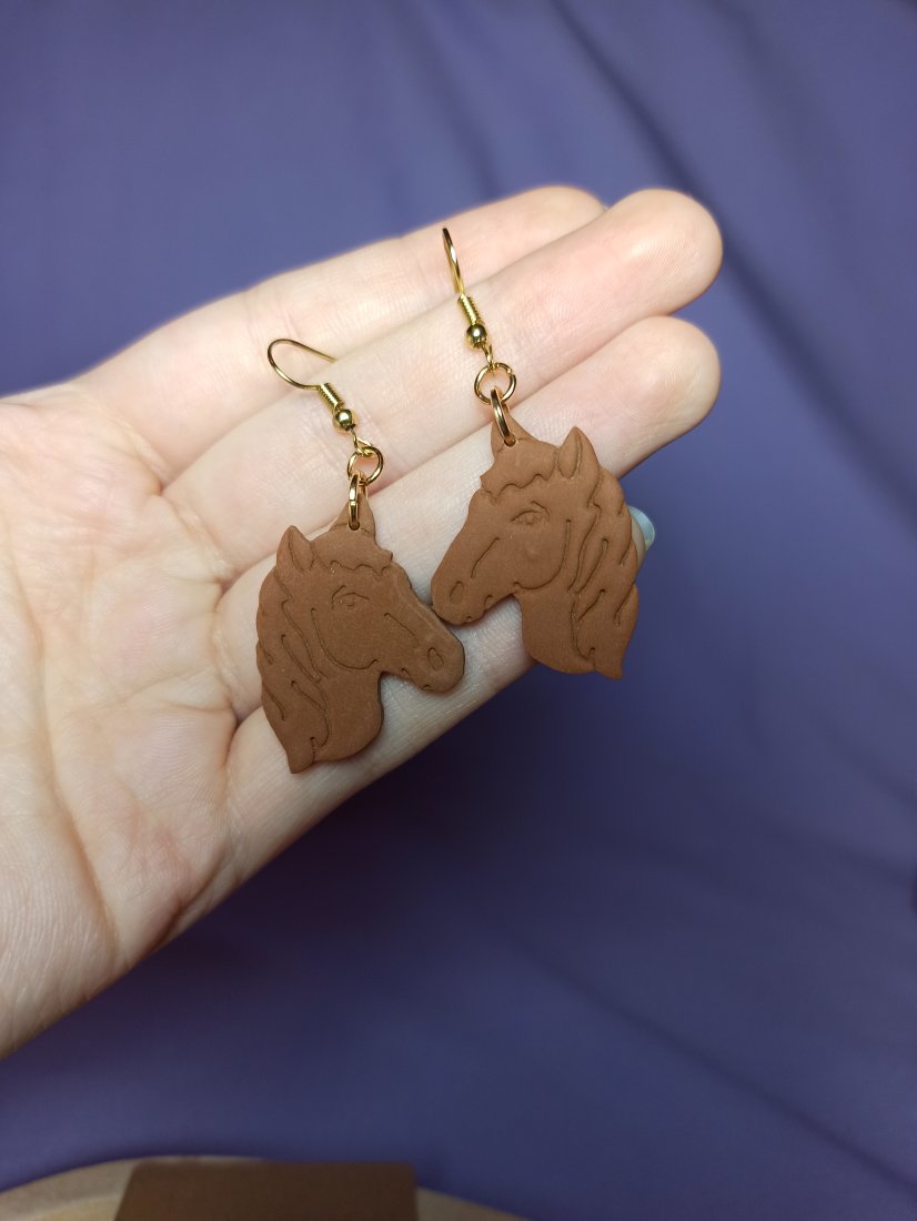 Kolczyki wiszące w kształcie brązowych końskich głów