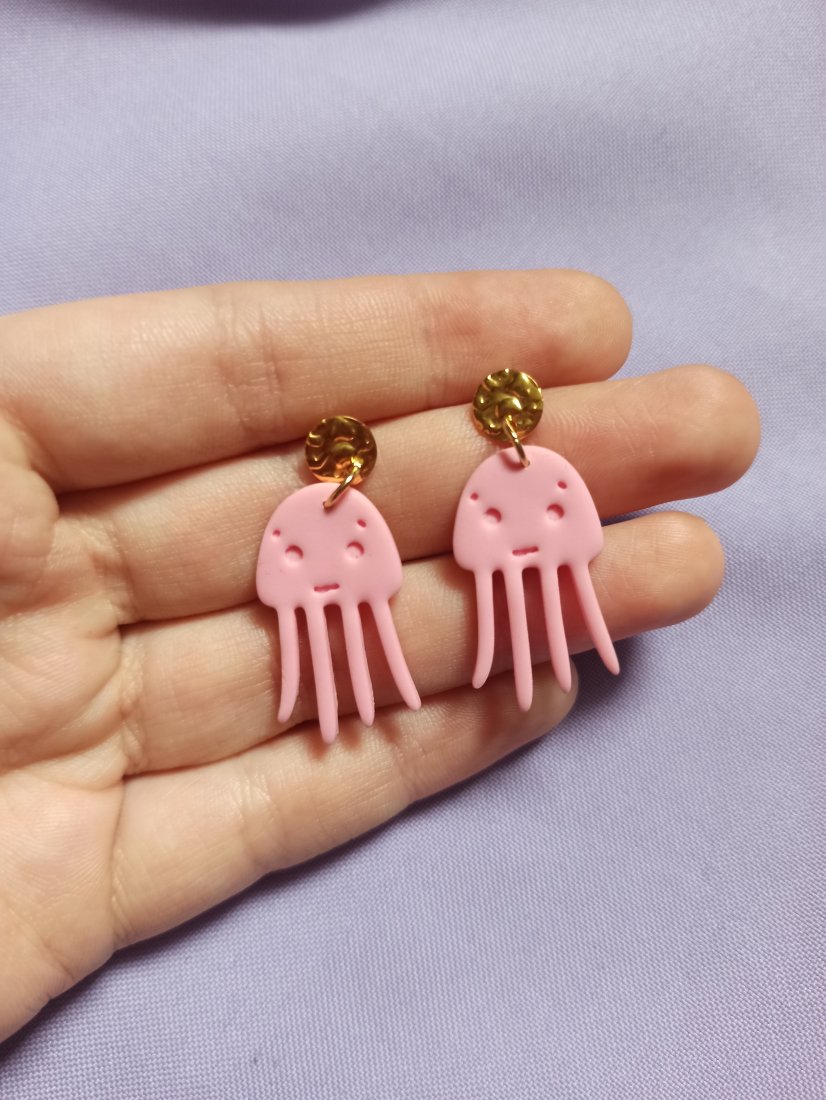 Kolczyki wykonane z gliny polimerowej, lekkie i wytrzymałe. Sztyfty ze stali chirurgicznej. W zestawie silikonowe zatyczki.