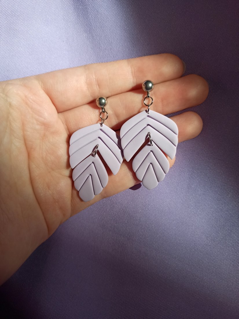 Kolczyki wykonane z gliny polimerowej, lekkie i wytrzymałe. Sztyfty ze stali chirurgicznej. W zestawie zatyczki.