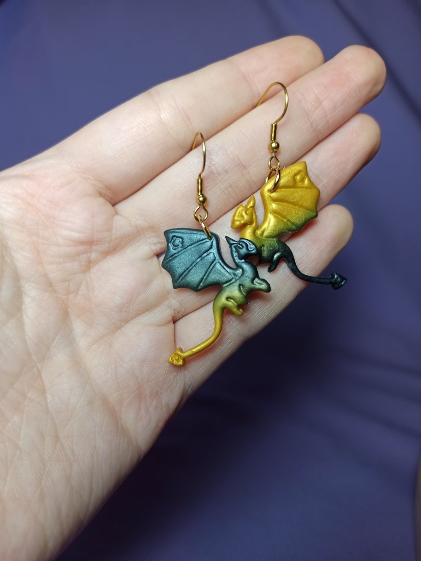 Kolczyki wiszące w kształcie smoków.