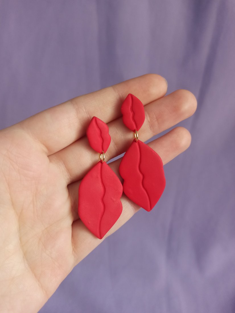 Kolczyki wiszące w kształcie czerwonych ust. Małe i duże połączone usta.