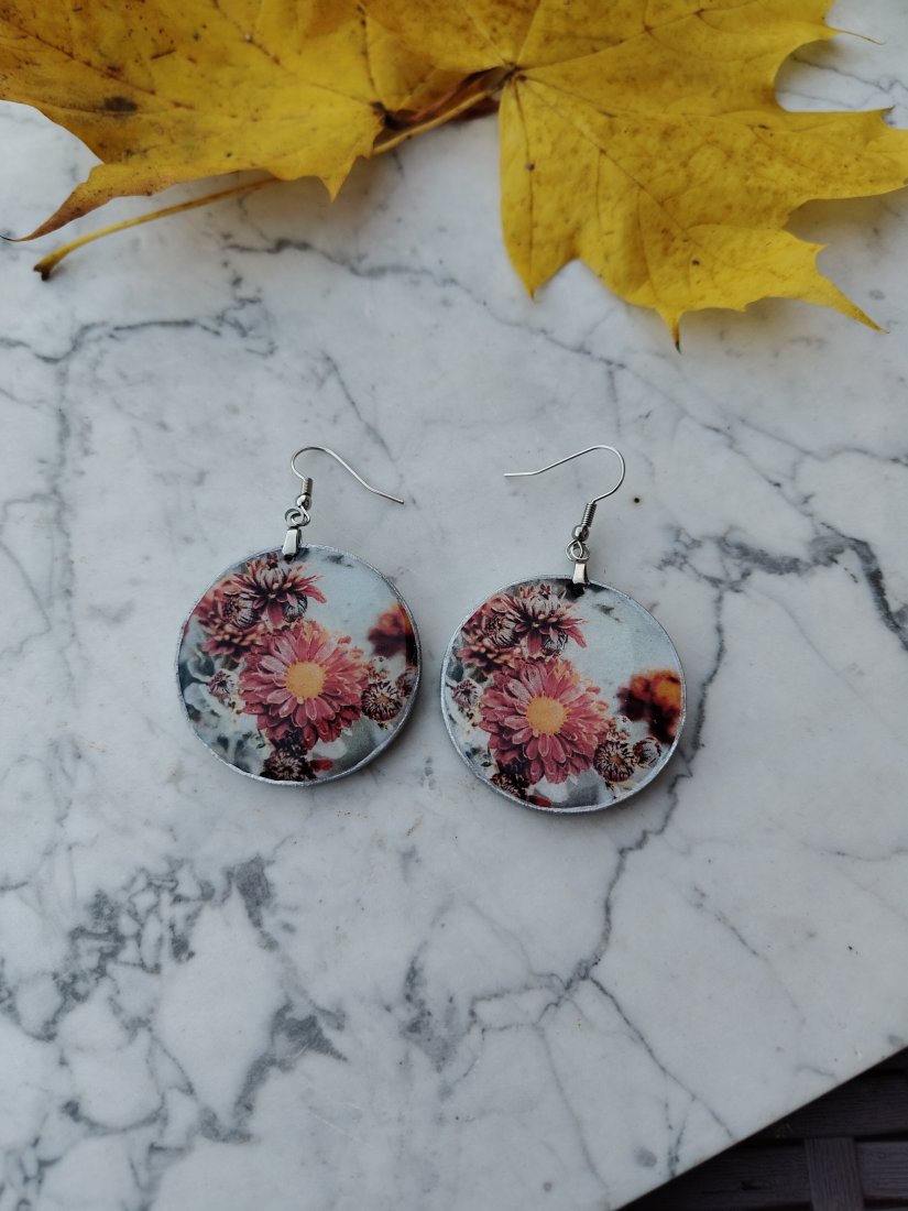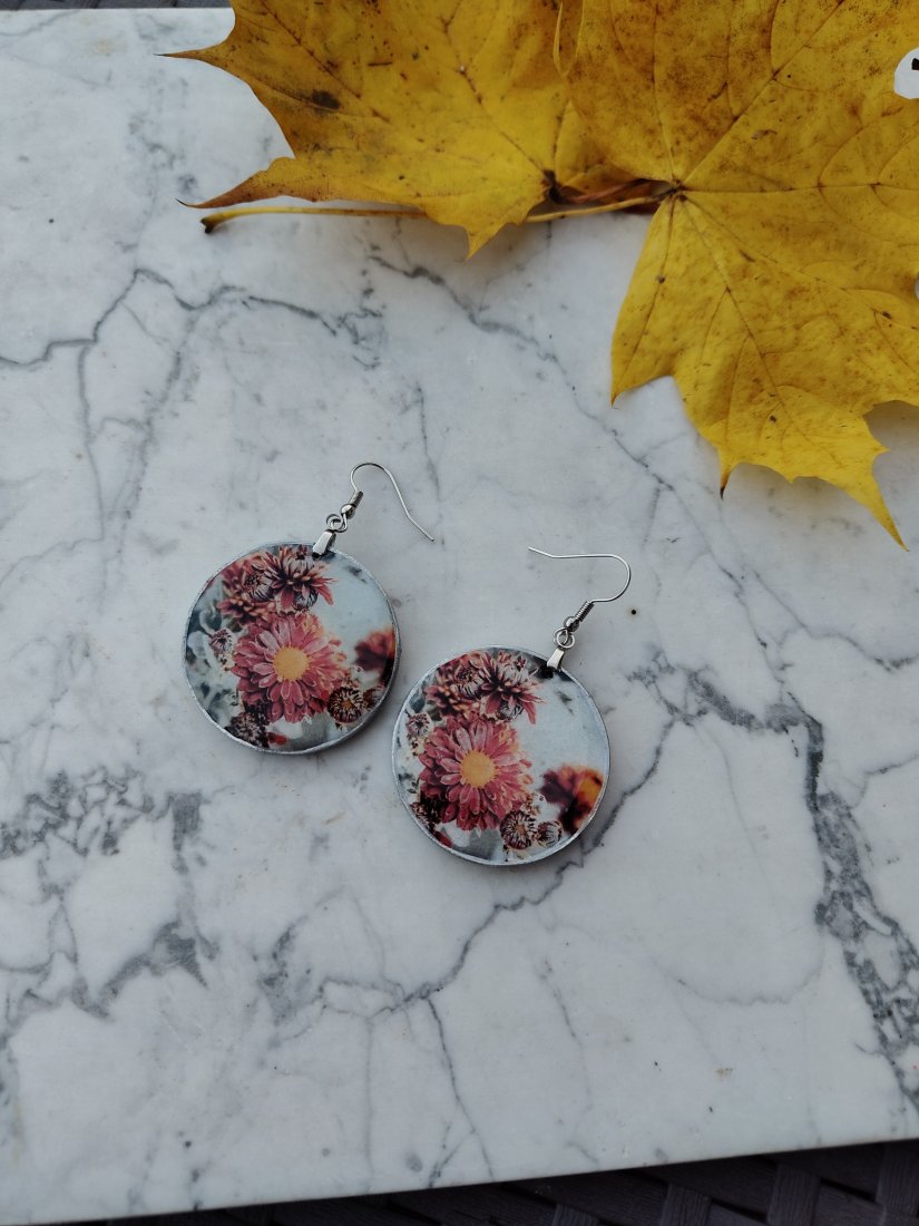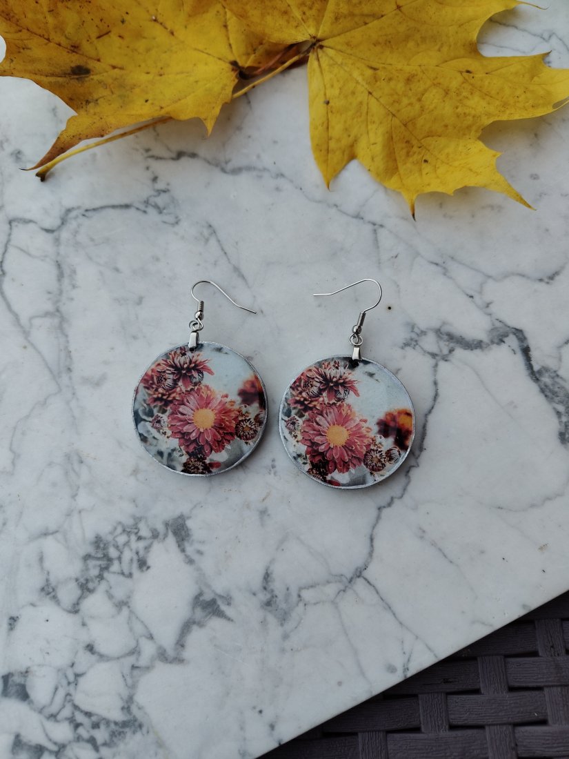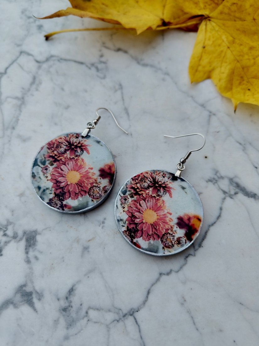 Delikatne, ręcznie wykonane kolczyki w kształcie okrągłych medalionów z motywem kwiatów w odcieniach różu i burgundu. Idealne jako subtelny, romantyczny akcent do codziennych stylizacji oraz jesiennych zestawów. Ich lekkość i oryginalny wzór sprawiają, że są nie tylko efektownym, ale też wygodnym dodatkiem.