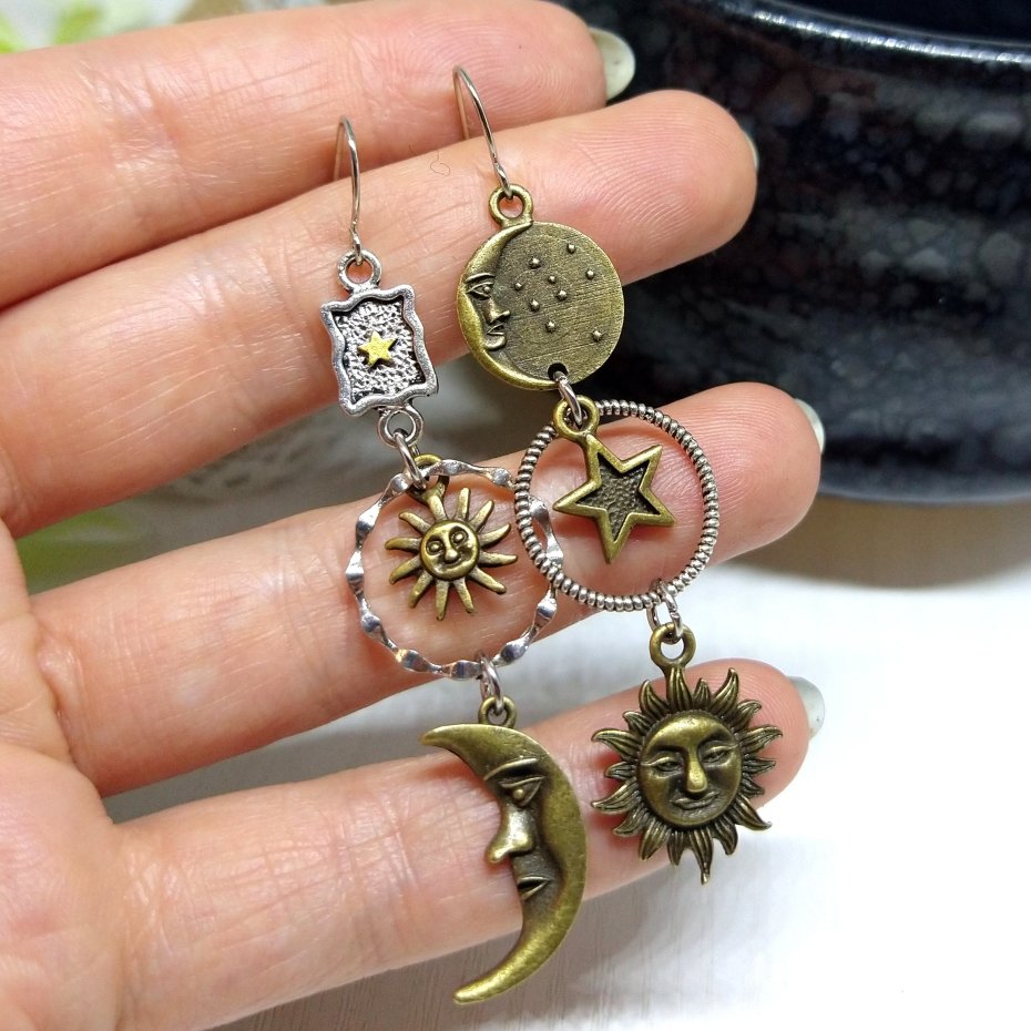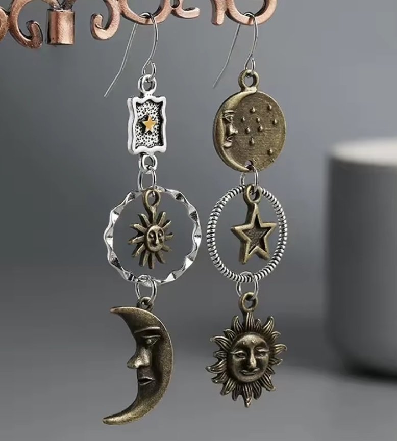 Cudne kolczyki z księżycem, słońcem, gwiazdami.