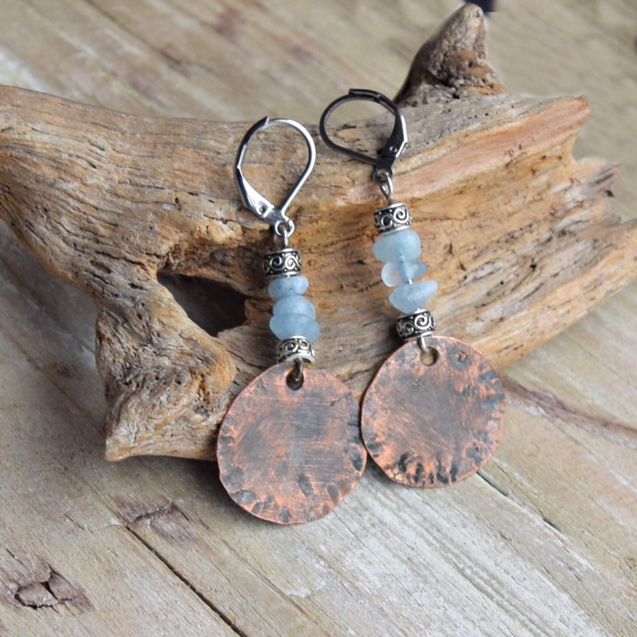 Tagi: #biżuteria z kamieniami, #biżuteria z miedzi, #kolczyki z miedzi, #kolczyki z miedzi akwamarynem