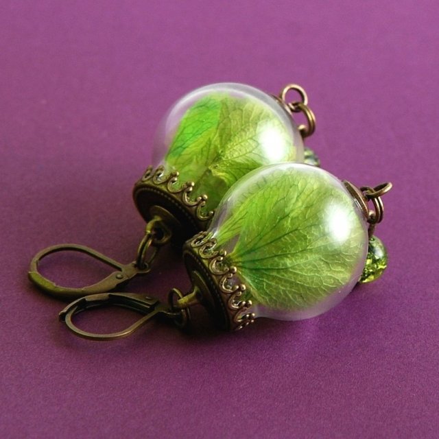 Niezwykłe, subtelne kolczyki w przeźroczystej kuli, która przepuszcza światło.