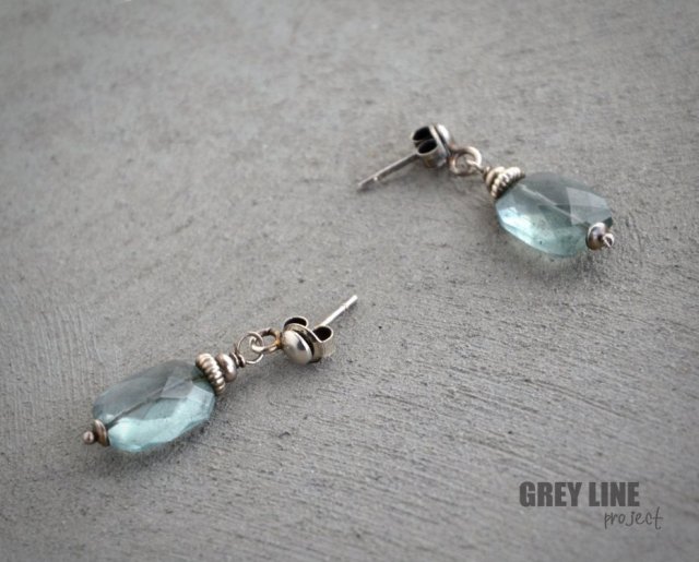 Delikatne kolczyki wkrętki wykonane ze srebra próby 925, oksydowanego i przecieranego oraz wyjątkowo pięknej dużej fasetowanej pastylki akwamarynu .
