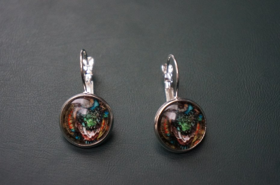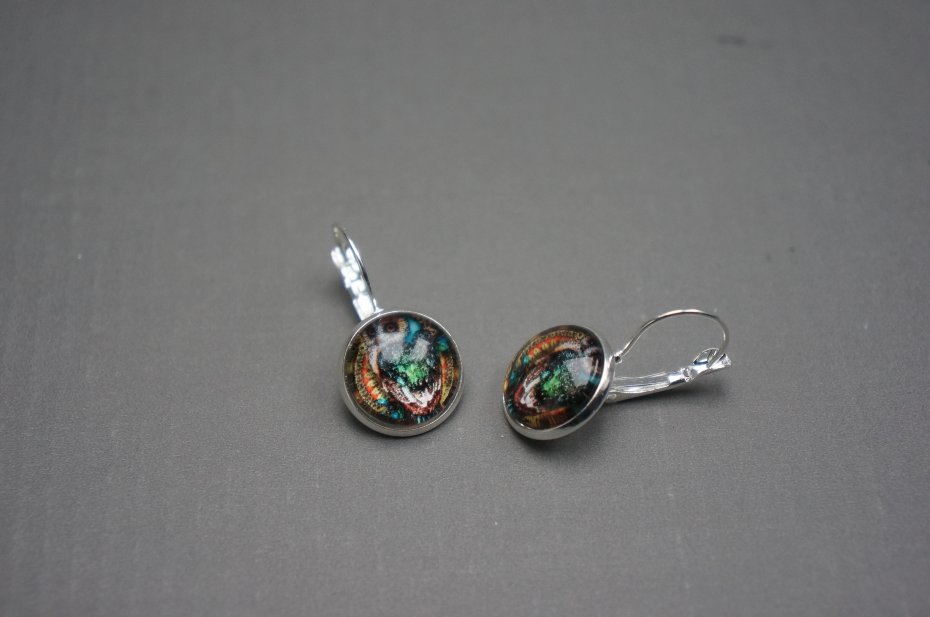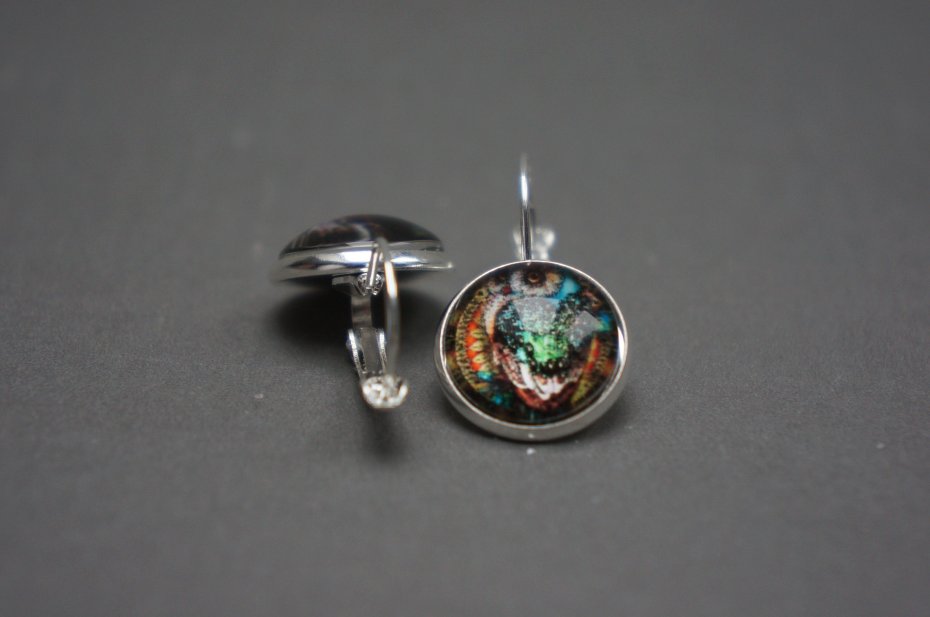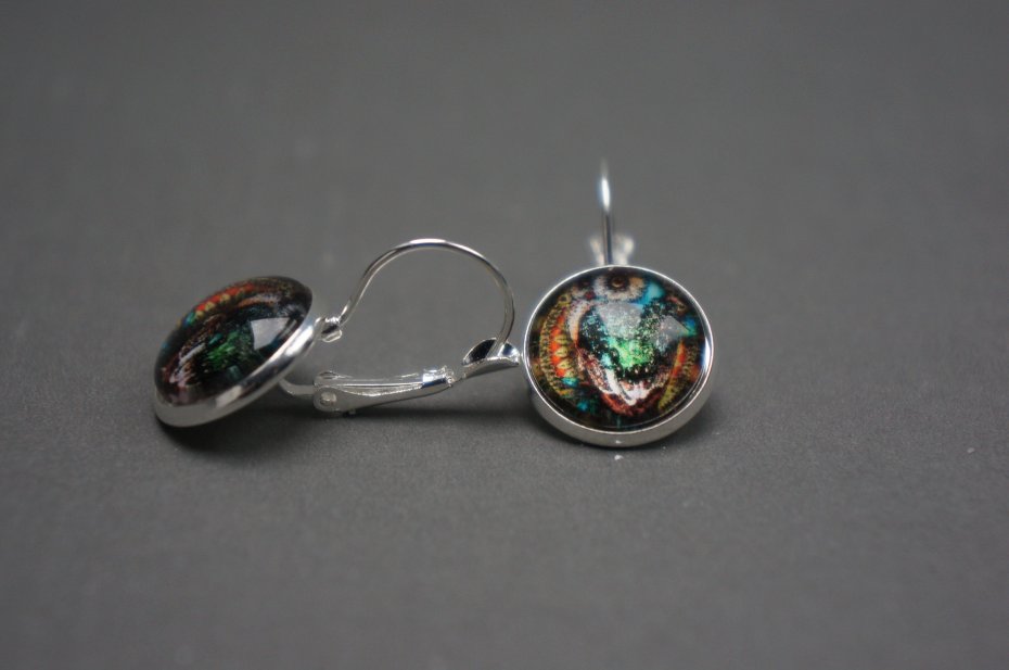 Kolczyki ze stali nierdzewnej. Zapięcie typu - zamknięty bigiel. Zawieszka ozdobiona małą, kolorową sową. Nowe. Stan bardzo dobry.