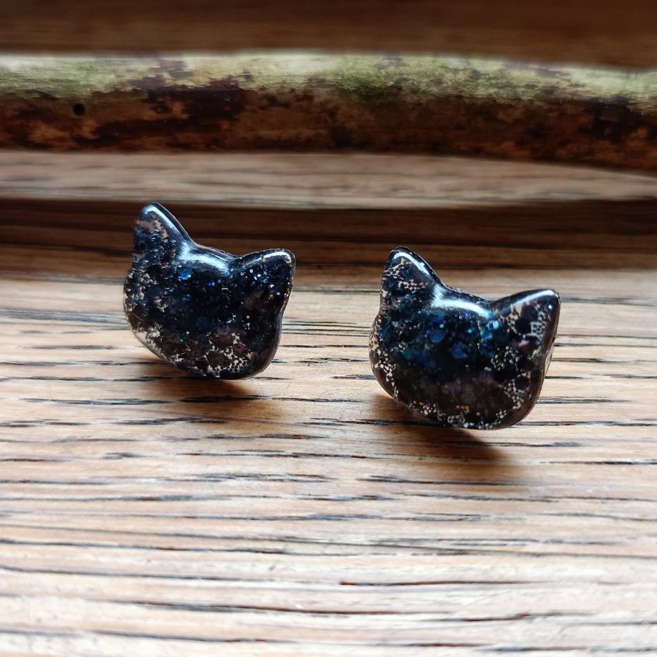 Te granatowe kolczyki w kształcie kota to biżuteria z charakterem – trochę mrucząca, trochę drapiąca, ale zawsze pełna uroku. Ich intensywny kolor przyciąga spojrzenia niczym koci wzrok w ciemności, a figlarny kształt dodaje każdej stylizacji pazura.