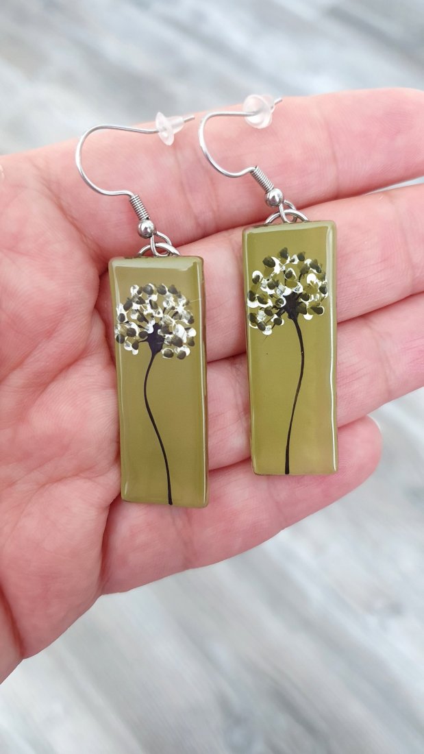 Uwaga: możliwa nieznaczna różnica między wzorami na obu kolczykach ze względu na ręczny charakter wykonania szklanego obrazka.