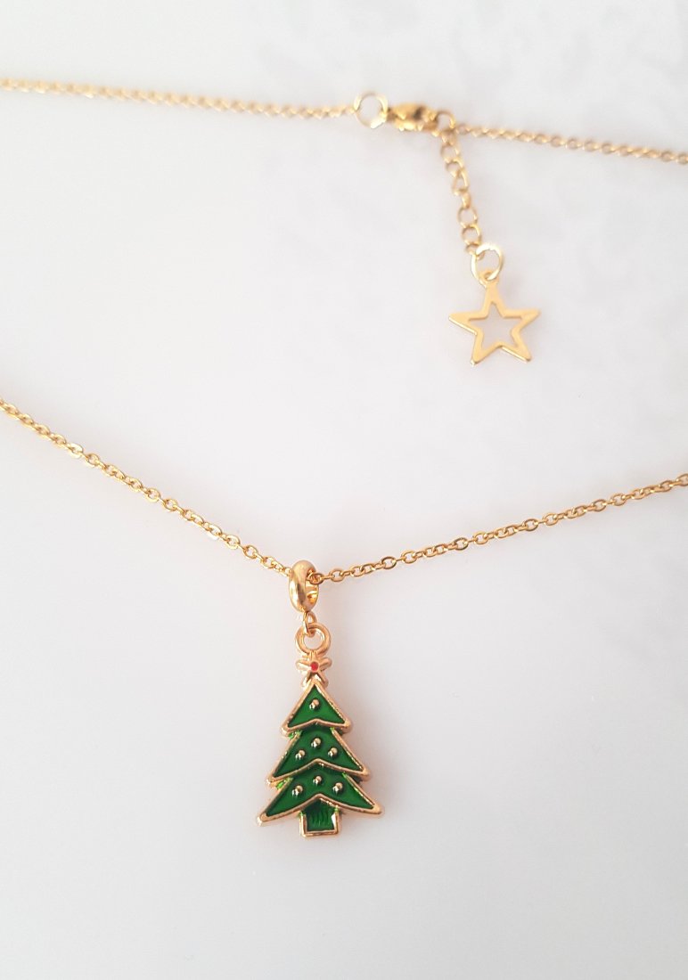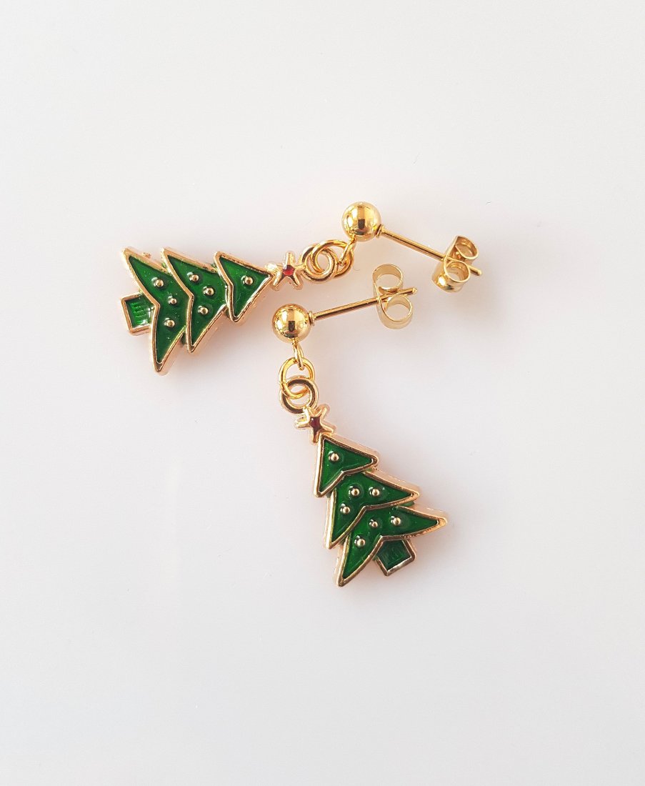 Sztyfty ze stali szlachetnej w kolorze złotym, zawieszka choinka z metalu.