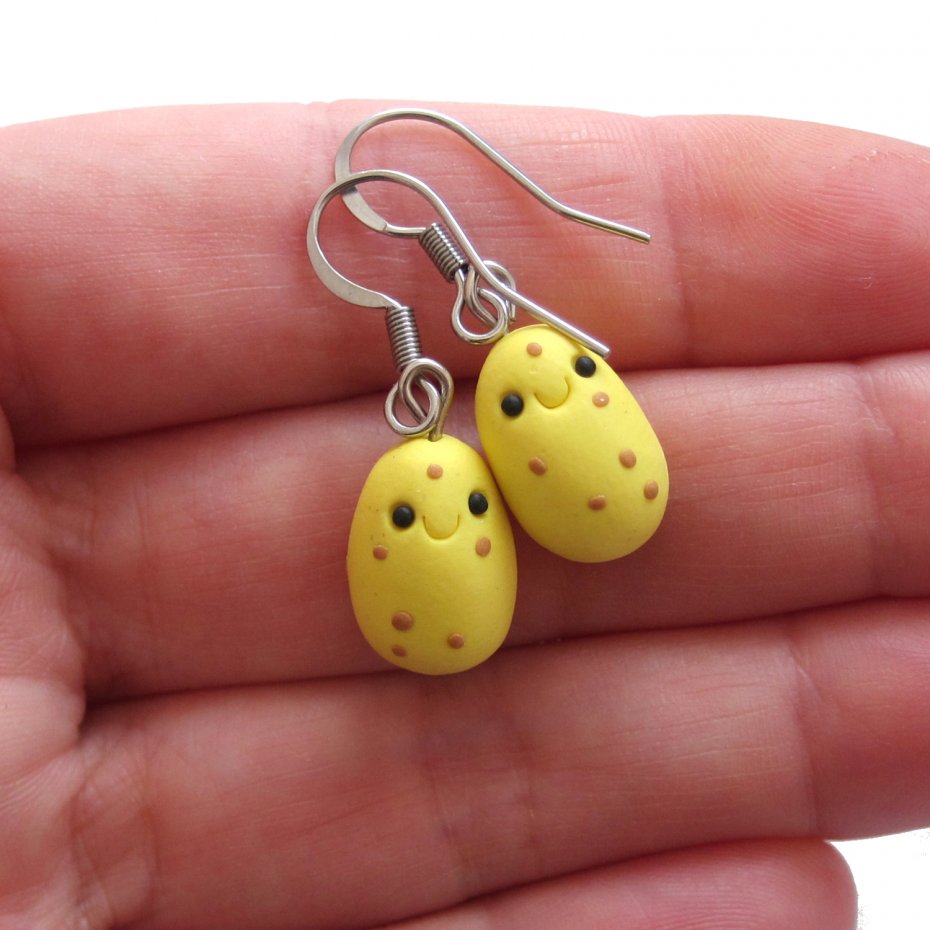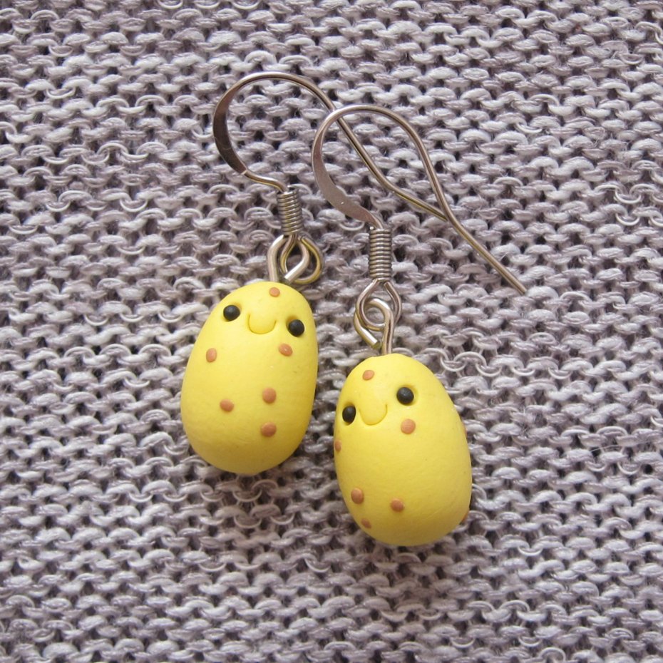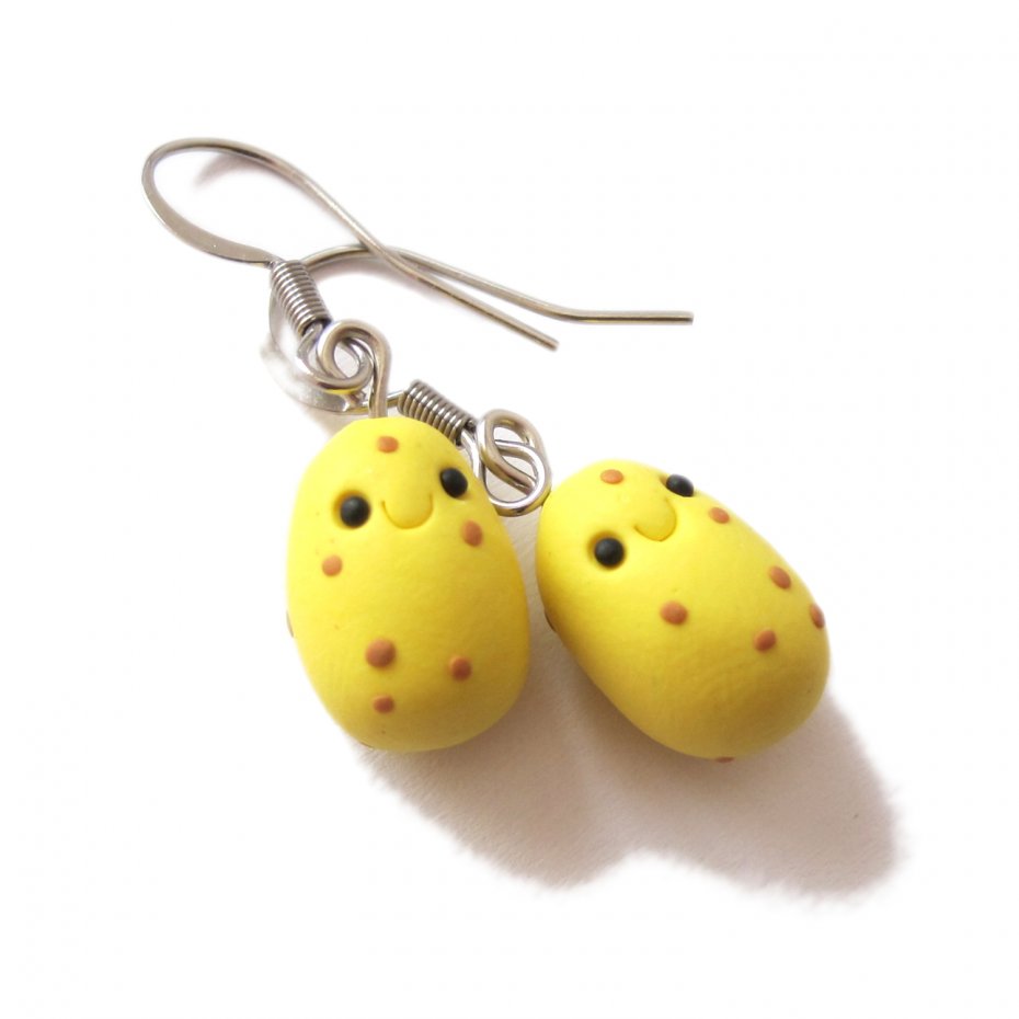 Kolorowe kolczyki wykonane ręcznie z masy termoutwardzalnej Fimo. Wielkość kolczyków to 1,5 cm (długość razem z biglami to 3,5 cm). Bigle wykonane są ze stali chirurgicznej. Kolczyki świetne na prezent.