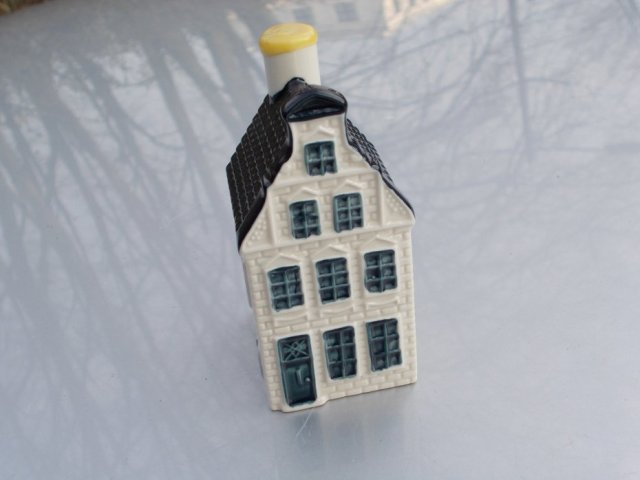 Porcelanowa, Kolekcjonerska to rzecz...Z serii kamieniczek w miniaturze. Kamieniczki z Amsterdamu...wciąż z zawartością :) Kolekcjonerska seria sygnowana BLUE DELFT'S Exclusively made for KLM by BOLS Distilleries Holland HKDNP i numerycznie 2003 51 Wykonana dla Bussines Class jako reklamówka.Seria z 2003 roku. Tu numer 51.