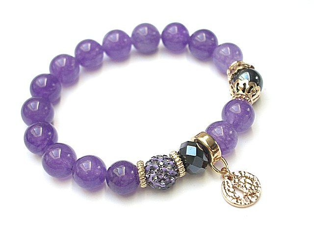 PROJEKT AUTORSKI. Bransoletka z kolekcji RICH charakteryzującej się wykorzystaniem w jednej bransoletce - mixu minerałów, kryształków, elementów ozdobnych, kryształków Swarovskiego, cyrkonii, przywieszek etc. . Model jest w sam sobie na tyle strojny, że nie wymaga uzupełnienia go dodatkowymi akcentami. Bransoletka wykonana z kamieni naturalnych - jadeity [10mm], szkła opalizującego [10mm], kryształka fasetowanego [8 x 10mm], przekladki shamballa wysadzanej kryształkami Swarovskiego, oraz elementów w kolorze tzw. różowego złota. Bransoletka na gumce silikonowej. Pasuje na nadgarstek 15,5-16,5cm. Biżuteria ozdobnie zapakowana. Możliwość dopasowania bransoletki do nadgarstka - wcześniej prosimy o kontakt.