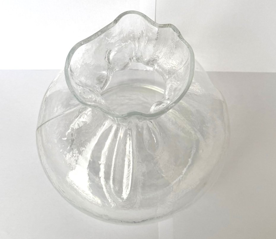 Ikona szwedzkiego designu – Wazon "Blomknyte" (Sakiewka). Wyjątkowy, pękaty wazon ze szkła artystycznego, pochodzący z renomowanej szwedzkiej huty SEA Glasbruk (obecnie część grupy Kosta Boda). Projekt ten, znany jako "Blomknyte" lub "Glass Bag", to ikona skandynawskiego modernizmu z lat 70. XX wieku.
