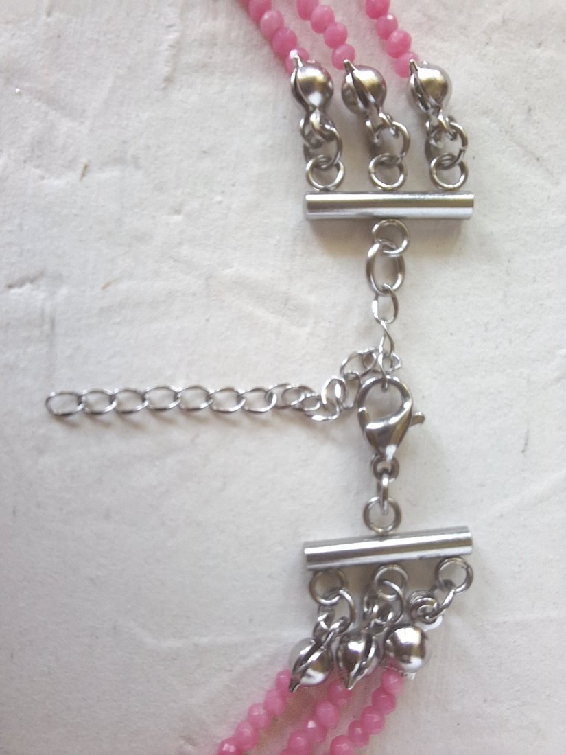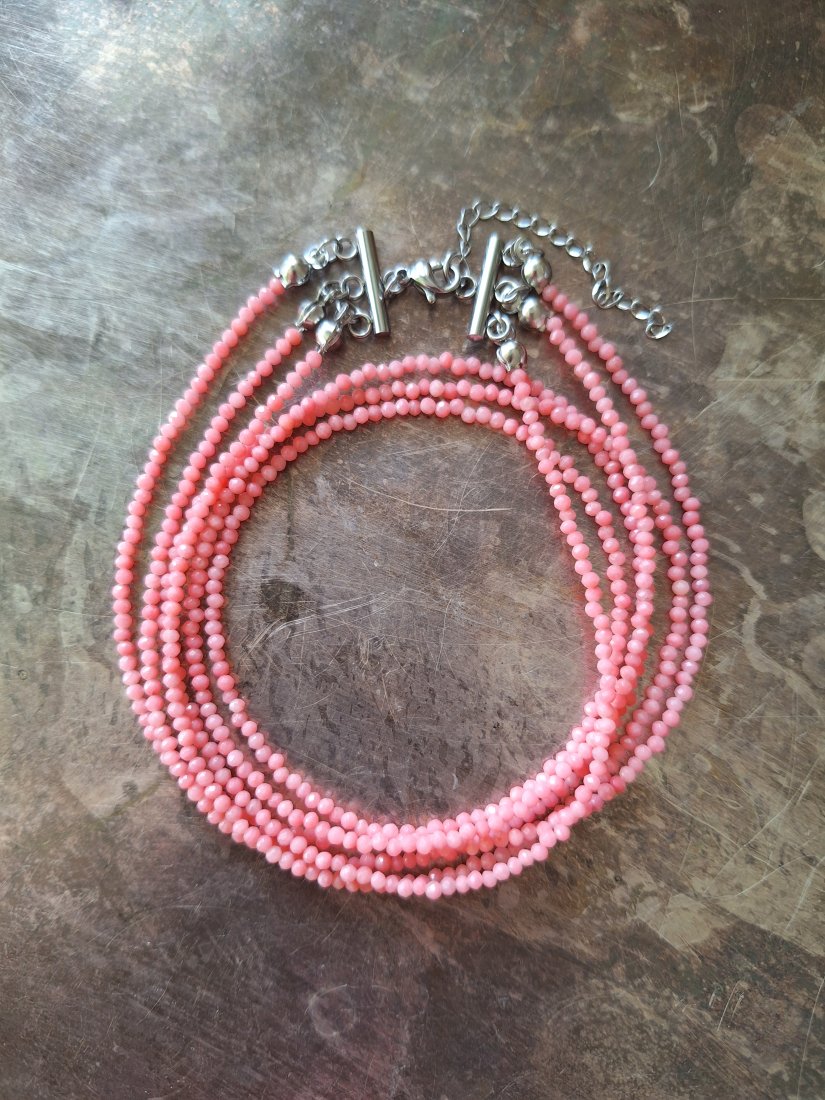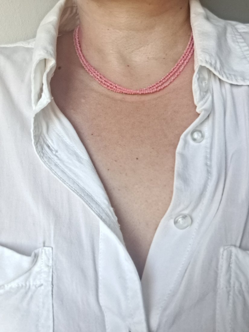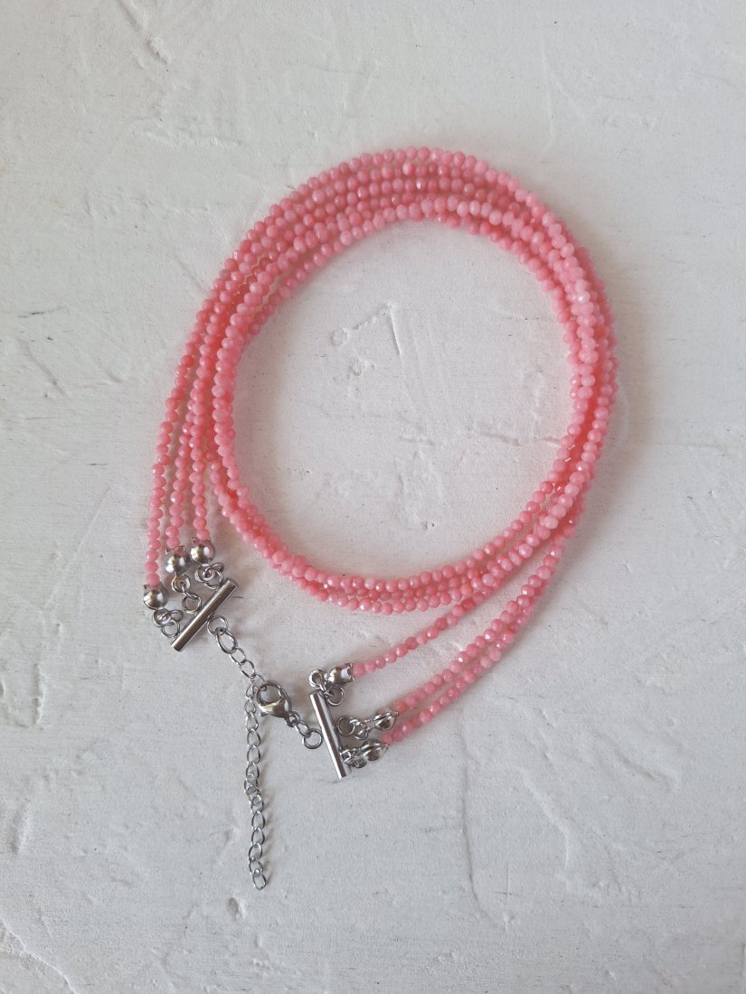 Kolia z 3 sznurów fasetowanego różowego koralu 2 mm.