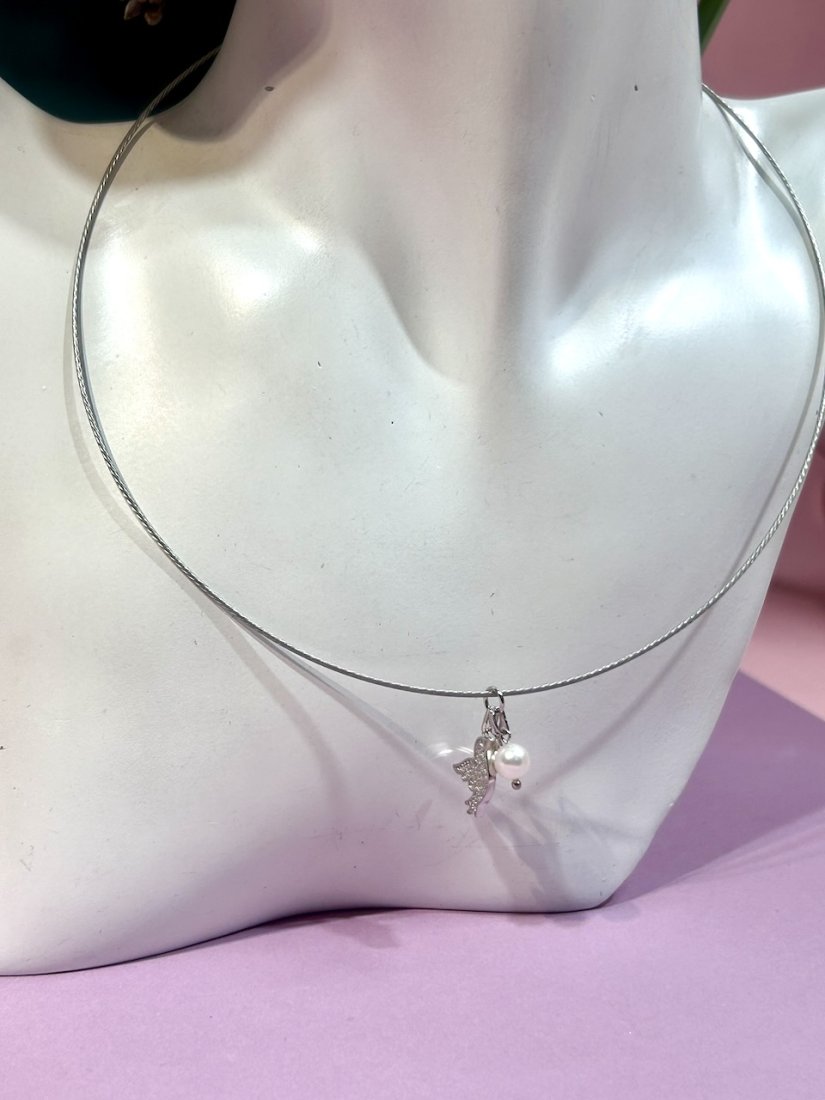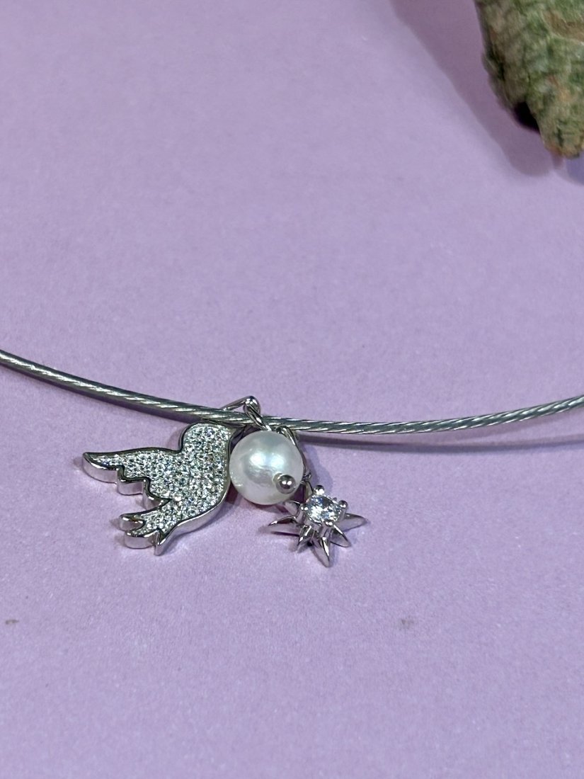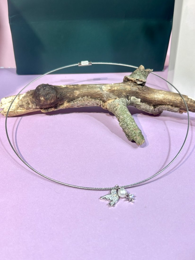 Kolia choker z cudnym ptaszkiem i prawdziwą perełką.