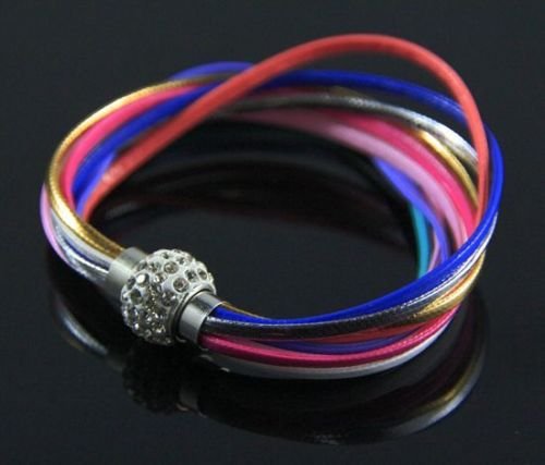 Bransoletka z kolorowych sznureczków z woskowanej bawełny.