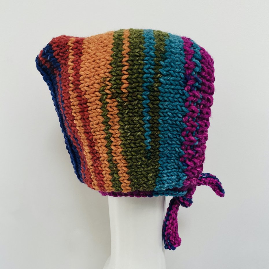Kaptur wykonałam ręcznie na drutach z miękkiej, ciepłej i przyjemnej w dotyku włóczki akrylowej. Bonetka jest jednocześnie lekka, oddychająca i elastyczna, a przy tym dobrze chroni przed chłodem. Delikatna struktura dzianiny dopasowuje się do kształtu głowy, zapewniając komfort noszenia bez uczucia ucisku.