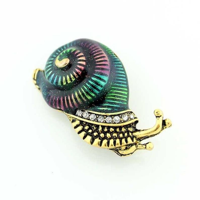 Nowa, urocza broszka w kształcie ślimaka wysadzana kryształkami.