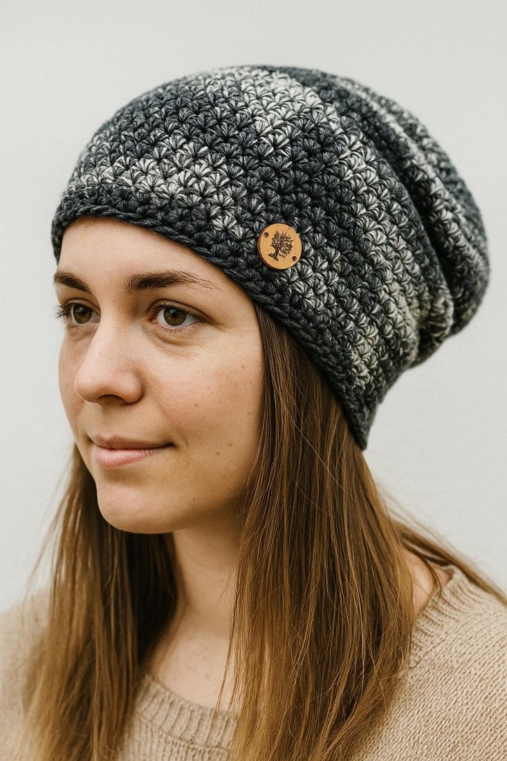 Czapkę wykonałam na szydełku z wysokiej jakości włóczki bawełniano-akrylowej, która zapewnia wygodę noszenia przez cały dzień.