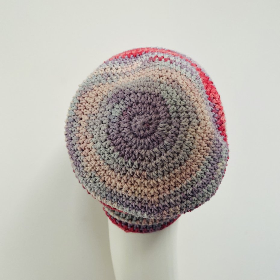 Czapkę wykonałam na szydełku z wysokiej jakości włóczki bawełniano-akrylowej, która zapewnia wygodę noszenia przez cały dzień.