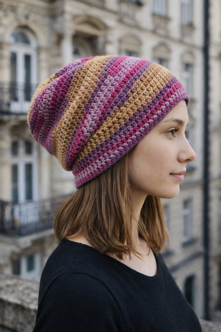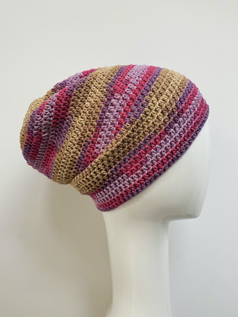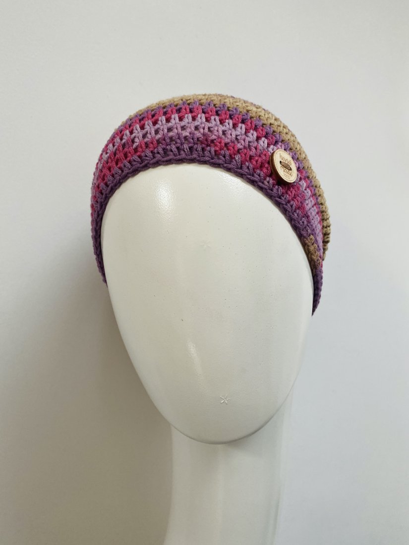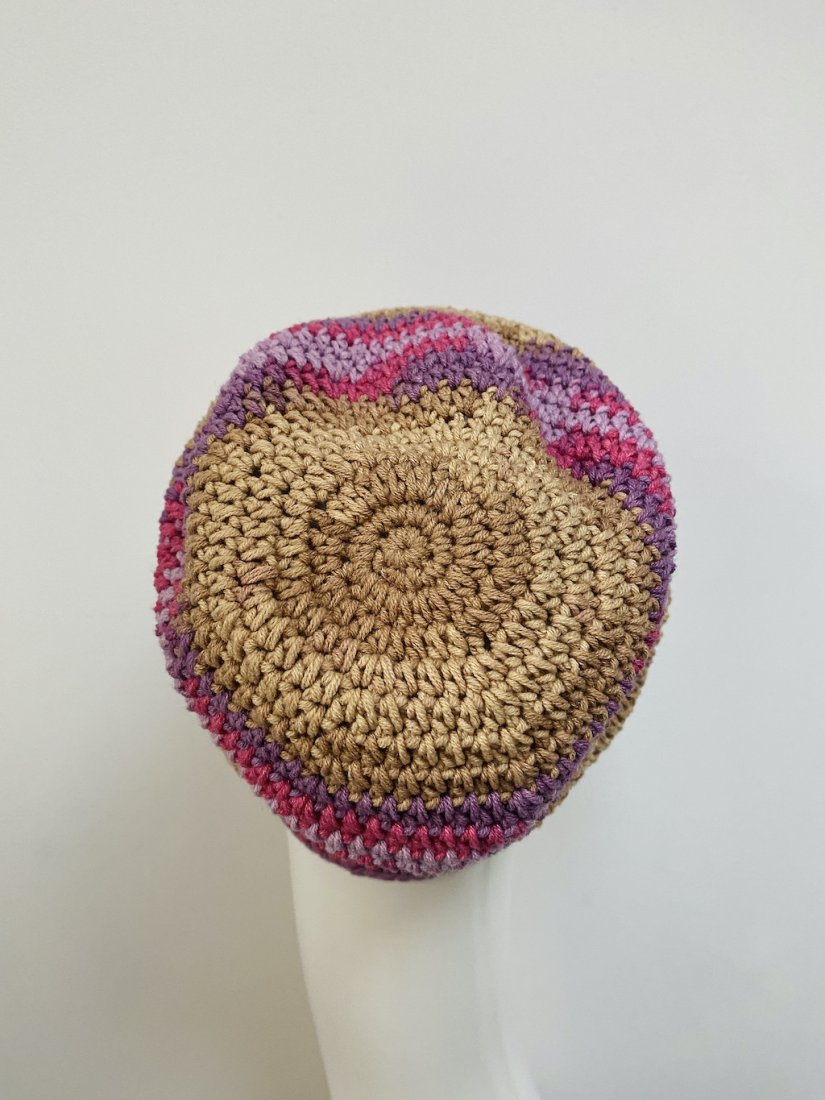 Czapkę wykonałam na szydełku z wysokiej jakości włóczki bawełniano-akrylowej, która zapewnia wygodę noszenia przez cały dzień.