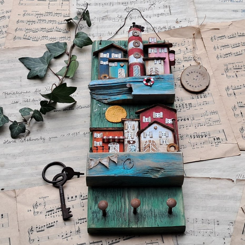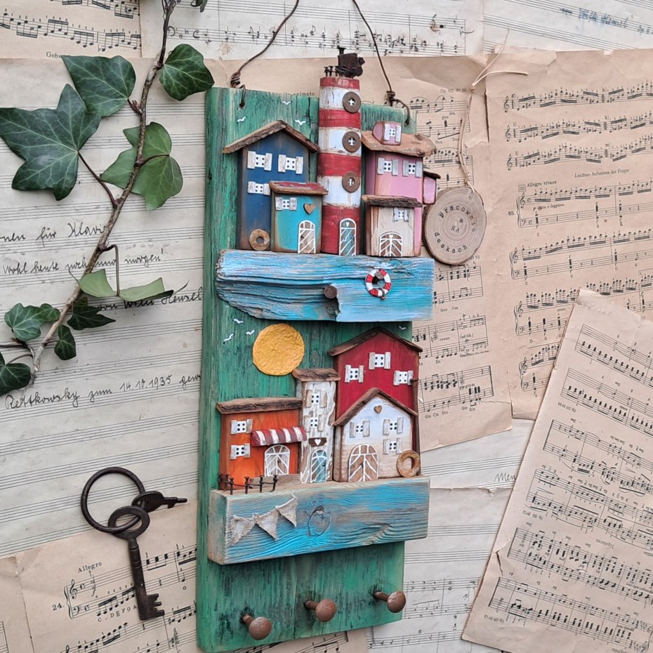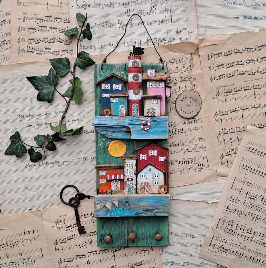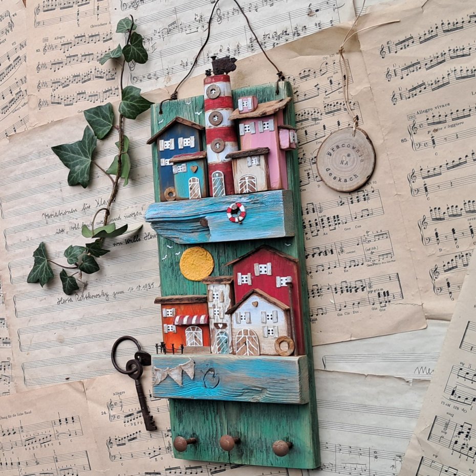 Tagi: #dekoracyjny wieszak, #do powieszenia na ścianie, #kolorowe domki drewniane, #pomysł na prezent